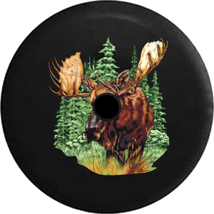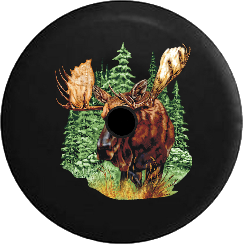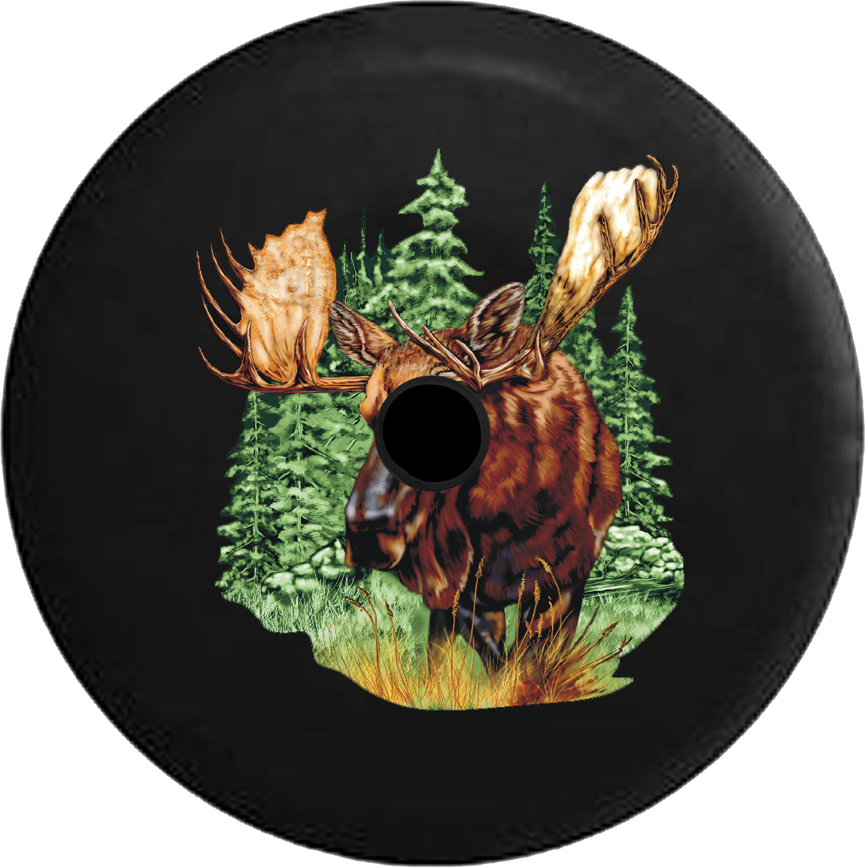 Jeep Wrangler JL Backup Camera Moose in the Great Wilderness Giant Antlers RV Camper Spare Tire Cover-BLACK-