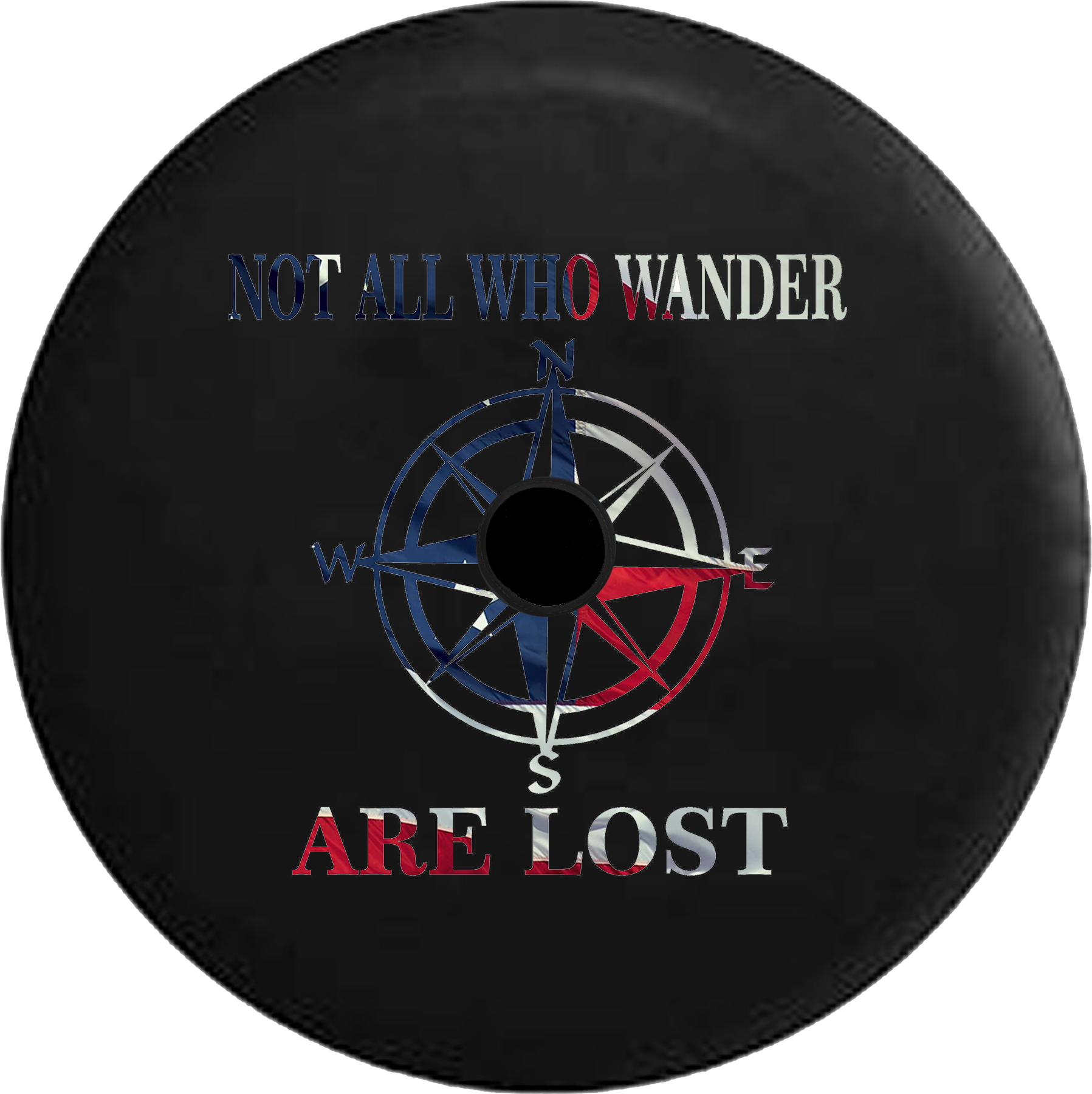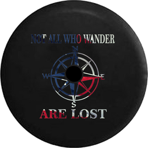 Jeep Wrangler JL Backup Camera Not All Who Wander Waving American Flag Spare Tire Cover-BLACK-