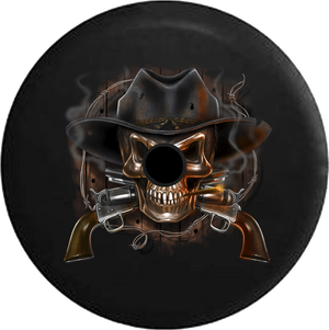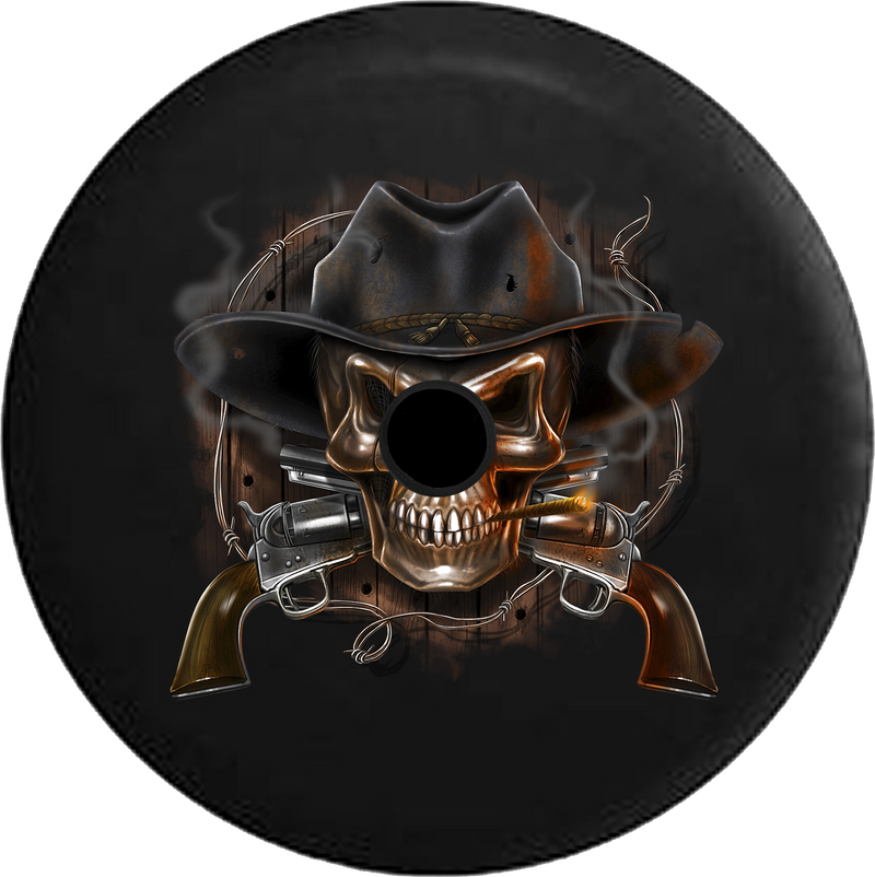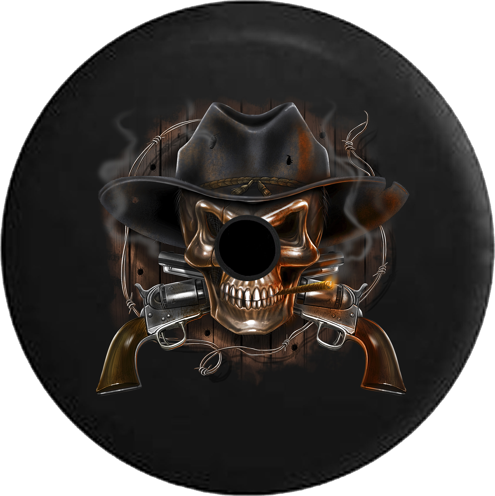 Jeep Wrangler JL Backup Camera Old Western Smoking Cowboy Skull with Revolvers RV Camper Spare Tire Cover-BLACK-