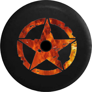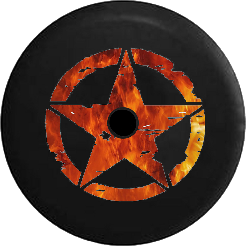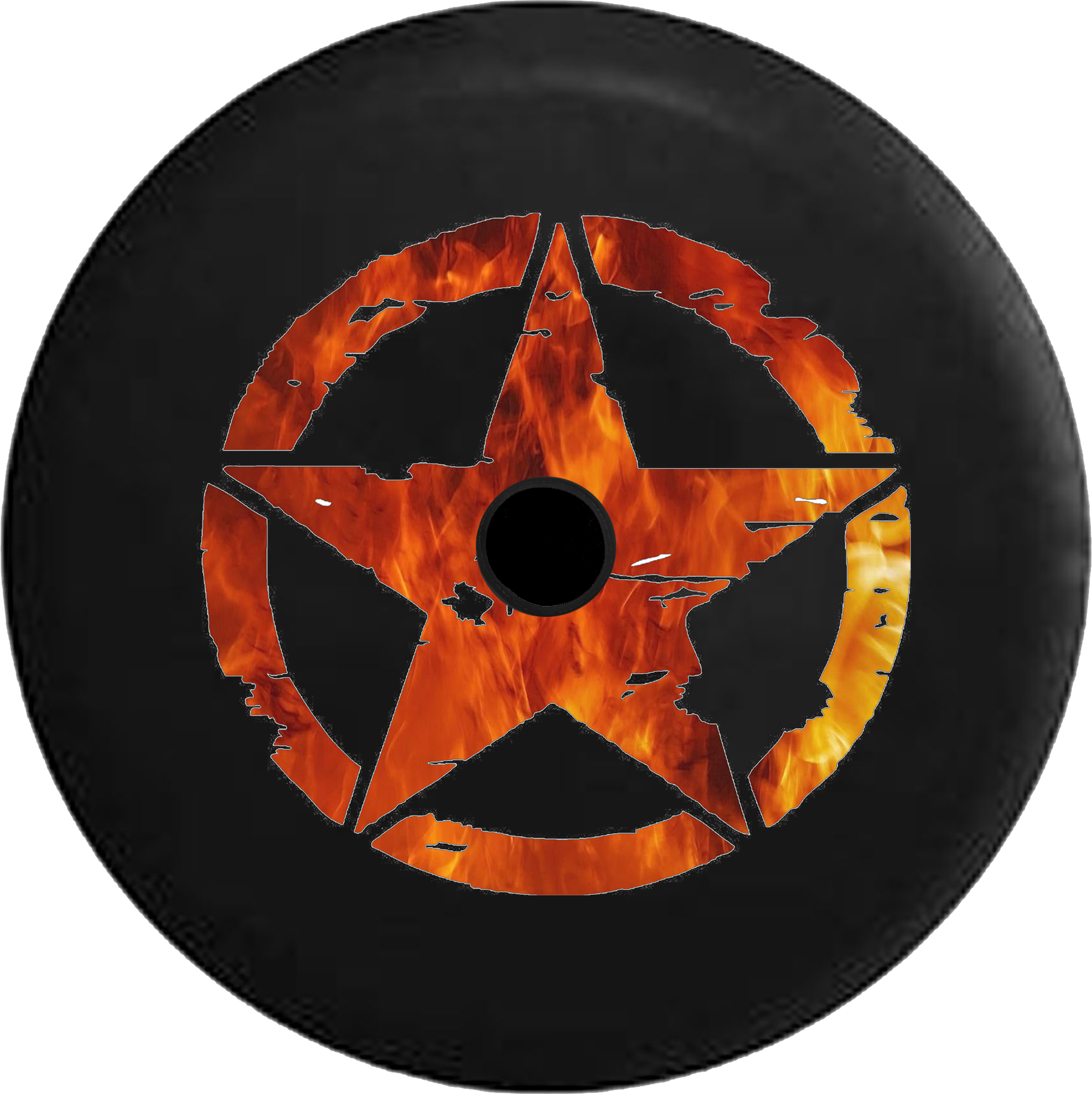 Jeep Wrangler JL Backup Camera Oscar Mike Military Jeep Star Orange Red Flames RV Camper Spare Tire Cover-BLACK-