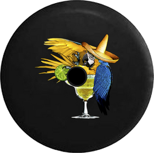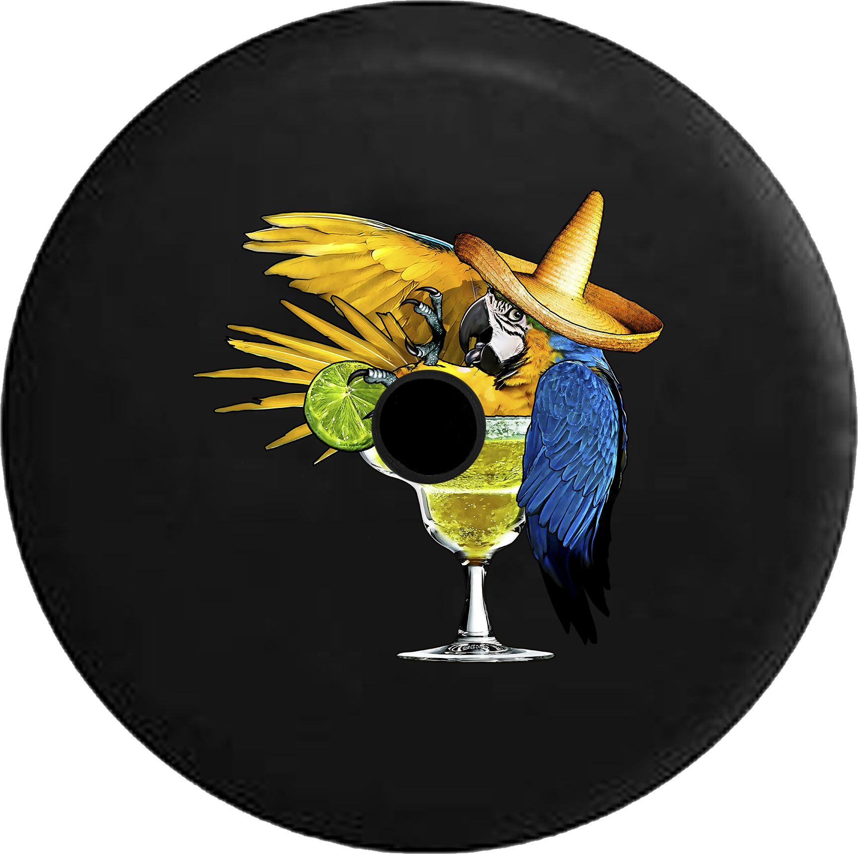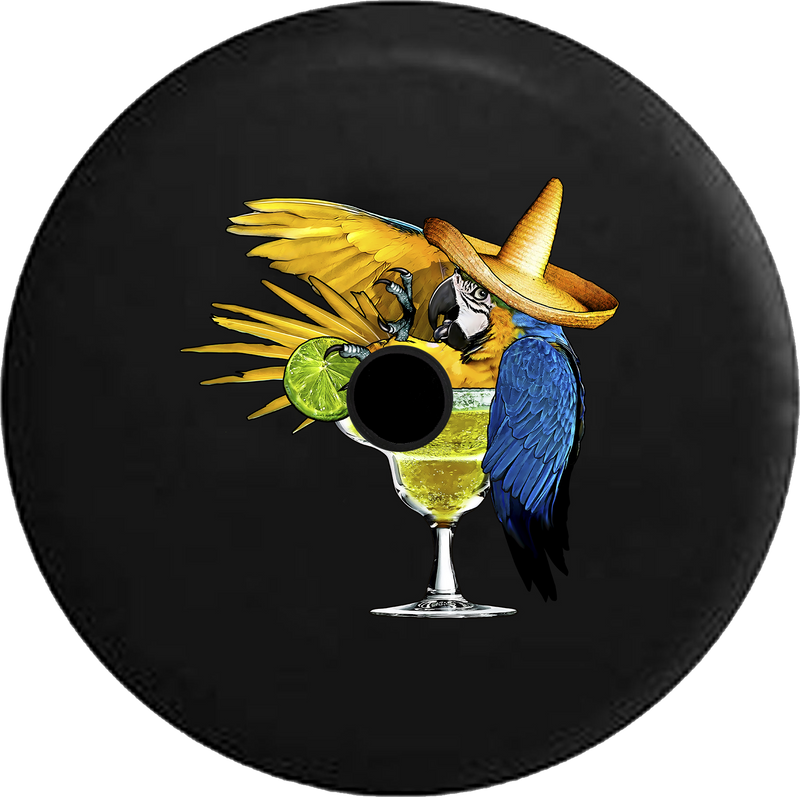Jeep Wrangler JL Backup Camera Parrot in Margarita Glass Tropical Beach Vacation Spare Tire Cover-BLACK- SKU-V321