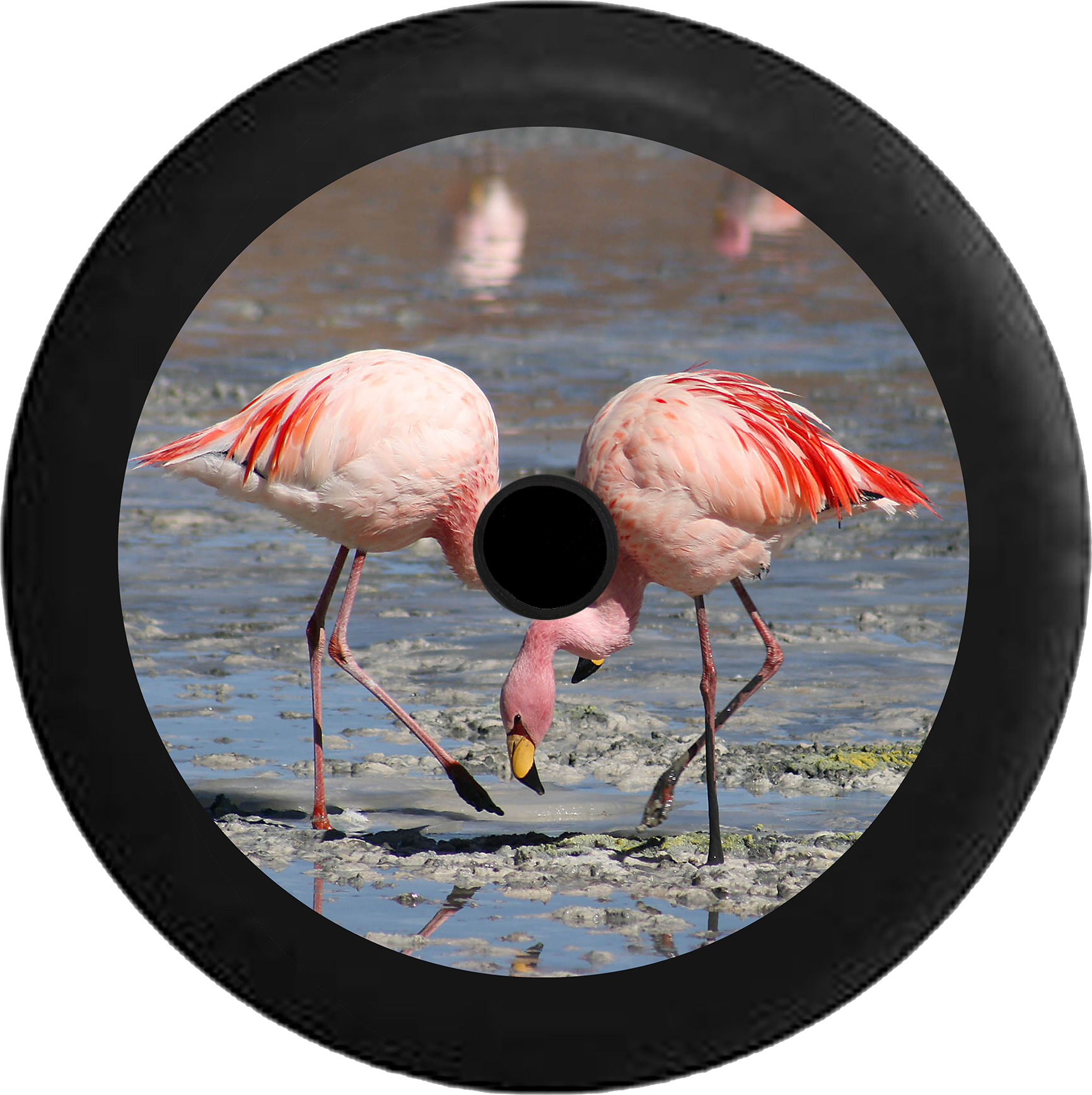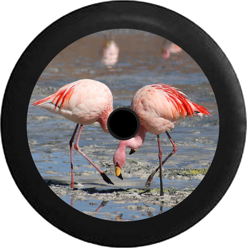 Jeep Wrangler JL Backup Camera Pink Flamingos wading in the Water Jeep Spare Tire Cover BLACK- - R138
