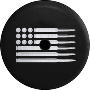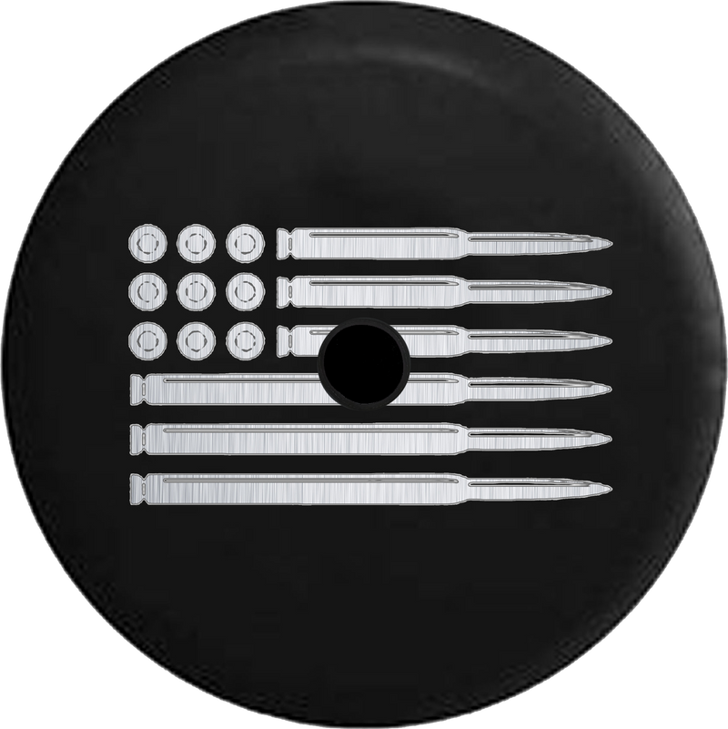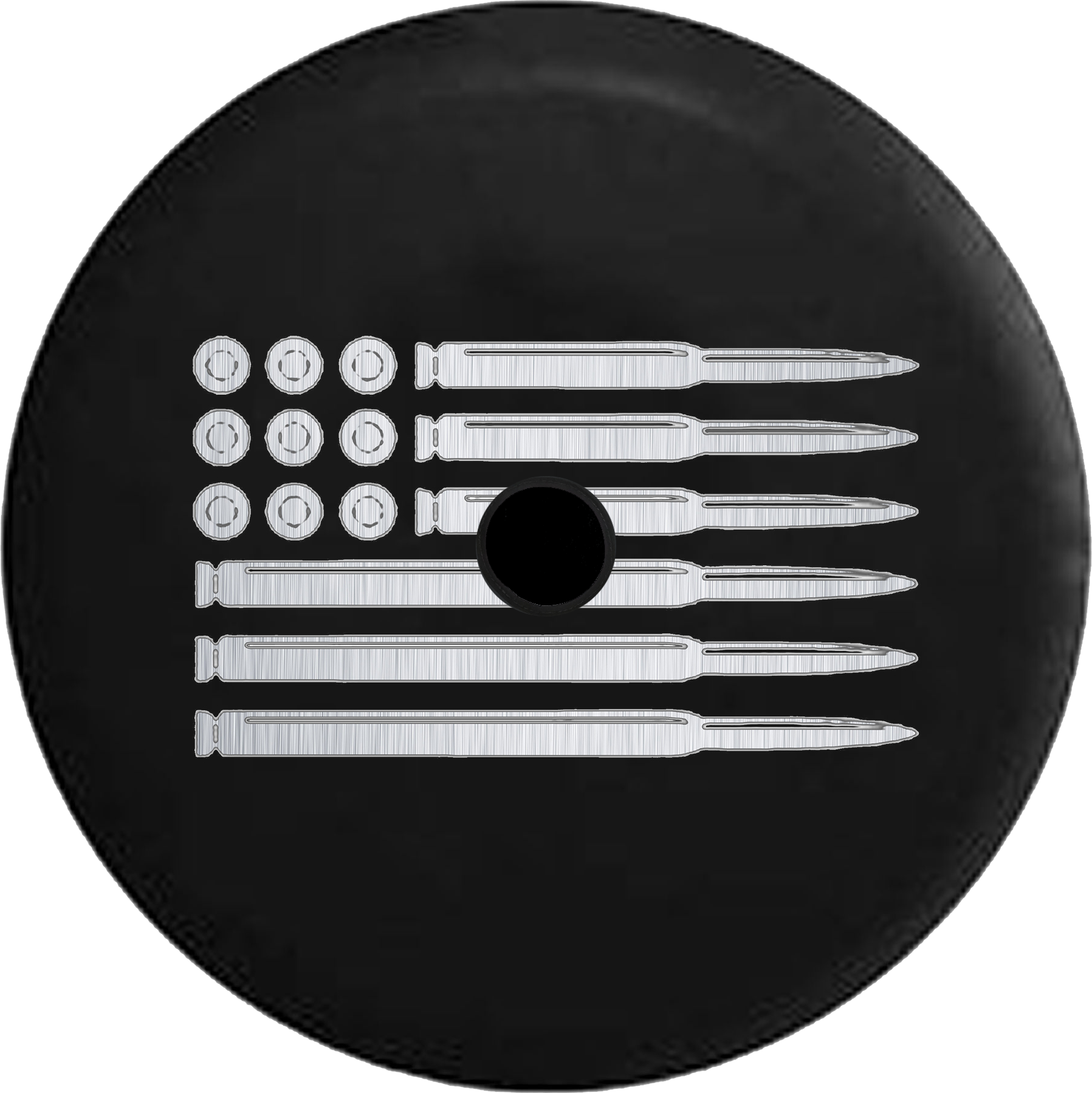 Jeep Wrangler JL Backup Camera Rifle Pistol Bullets Rounds American Flag 2nd Amendment Silver Spare Tire Cover-BLACK-