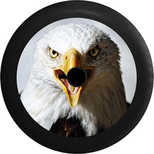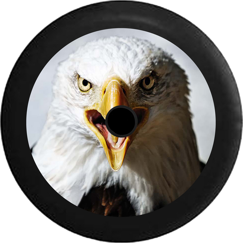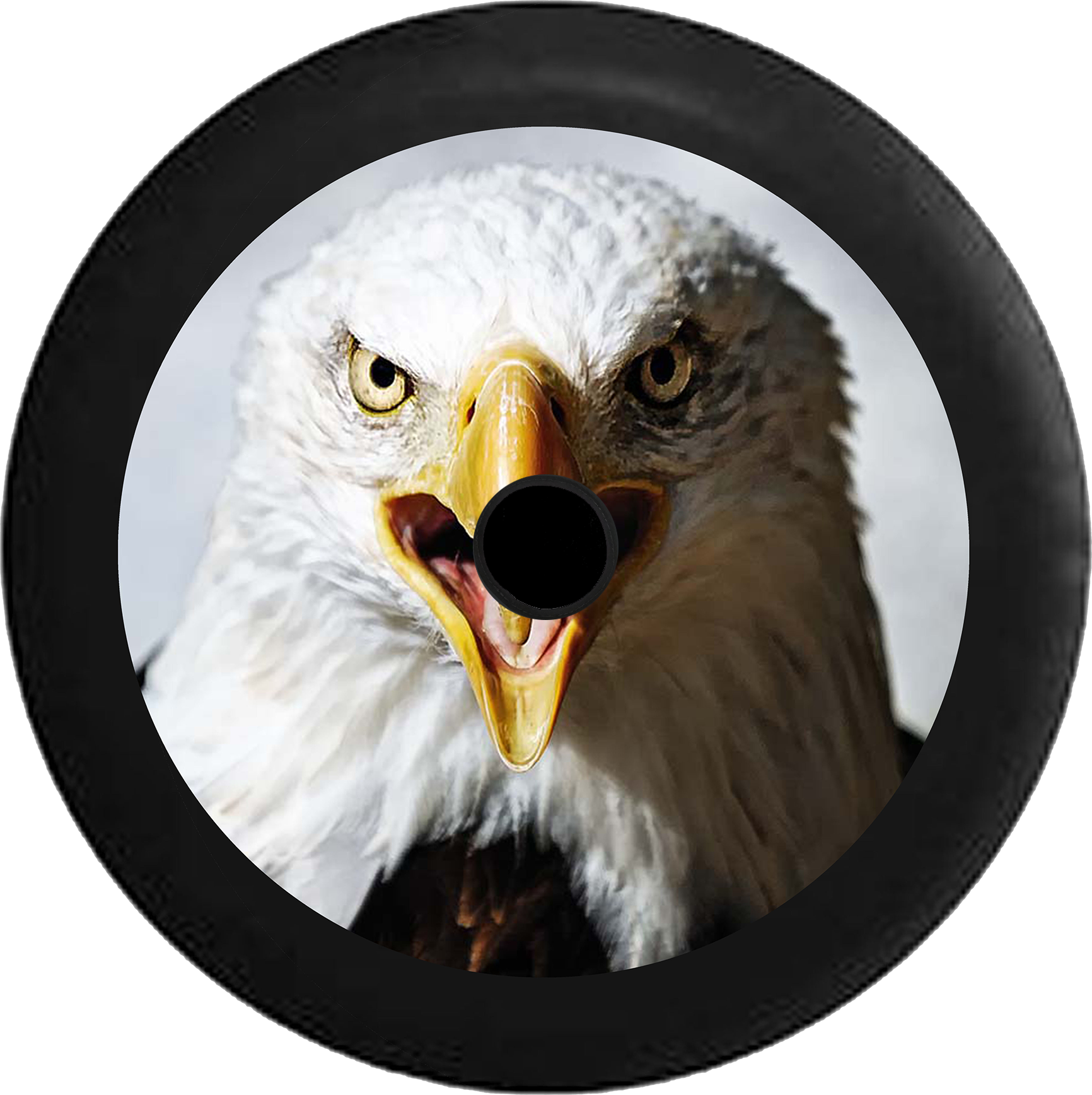 Jeep Wrangler JL Backup Camera Screaming American Bald Eagle Patriotic Closeup Jeep Camper Spare Tire Cover BLACK- - R125