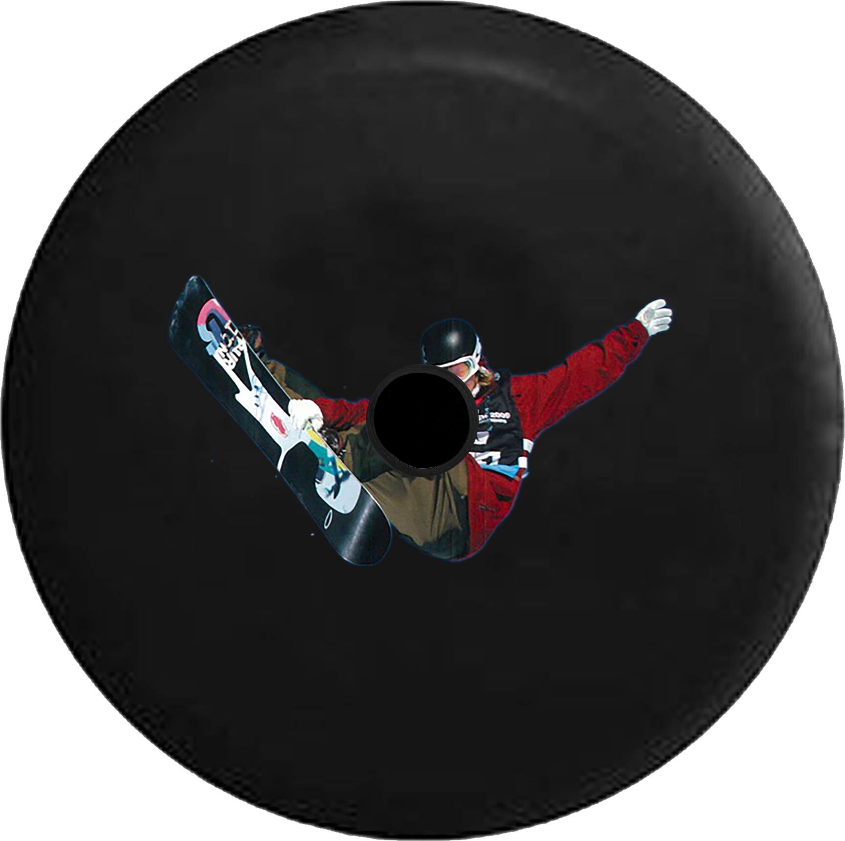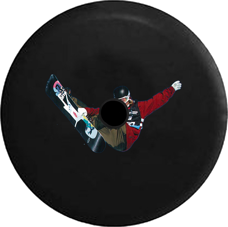 Jeep Wrangler JL Backup Camera Snowboarding Snow Tricks Halfpipe Downhill Winter Sports RV Camper Spare Tire Cover-BLACK-