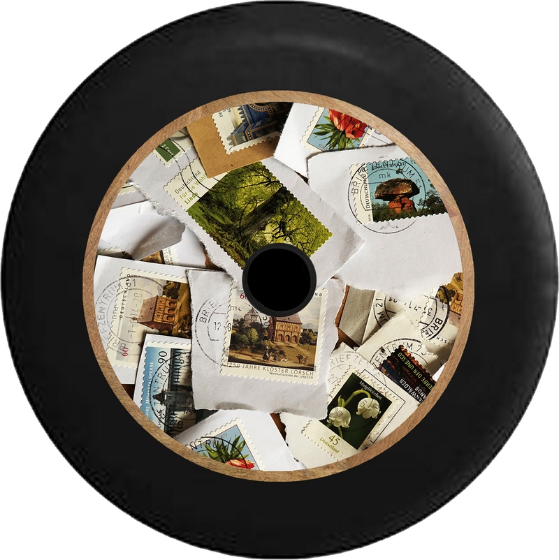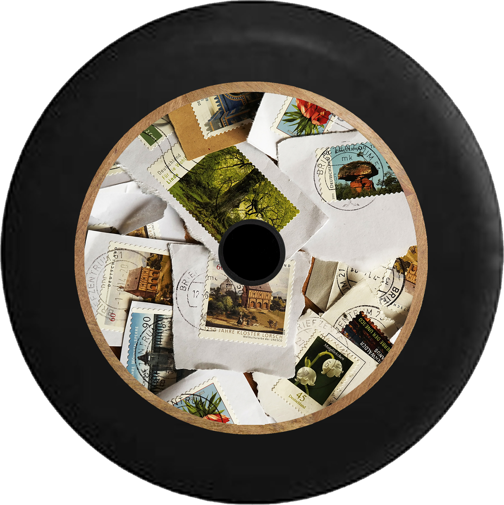 Jeep Wrangler JL Backup Camera Stamp Collecting Postage Traveling Euro Vacation Jeep Camper Spare Tire Cover BLACK- - R344