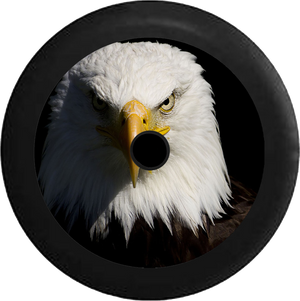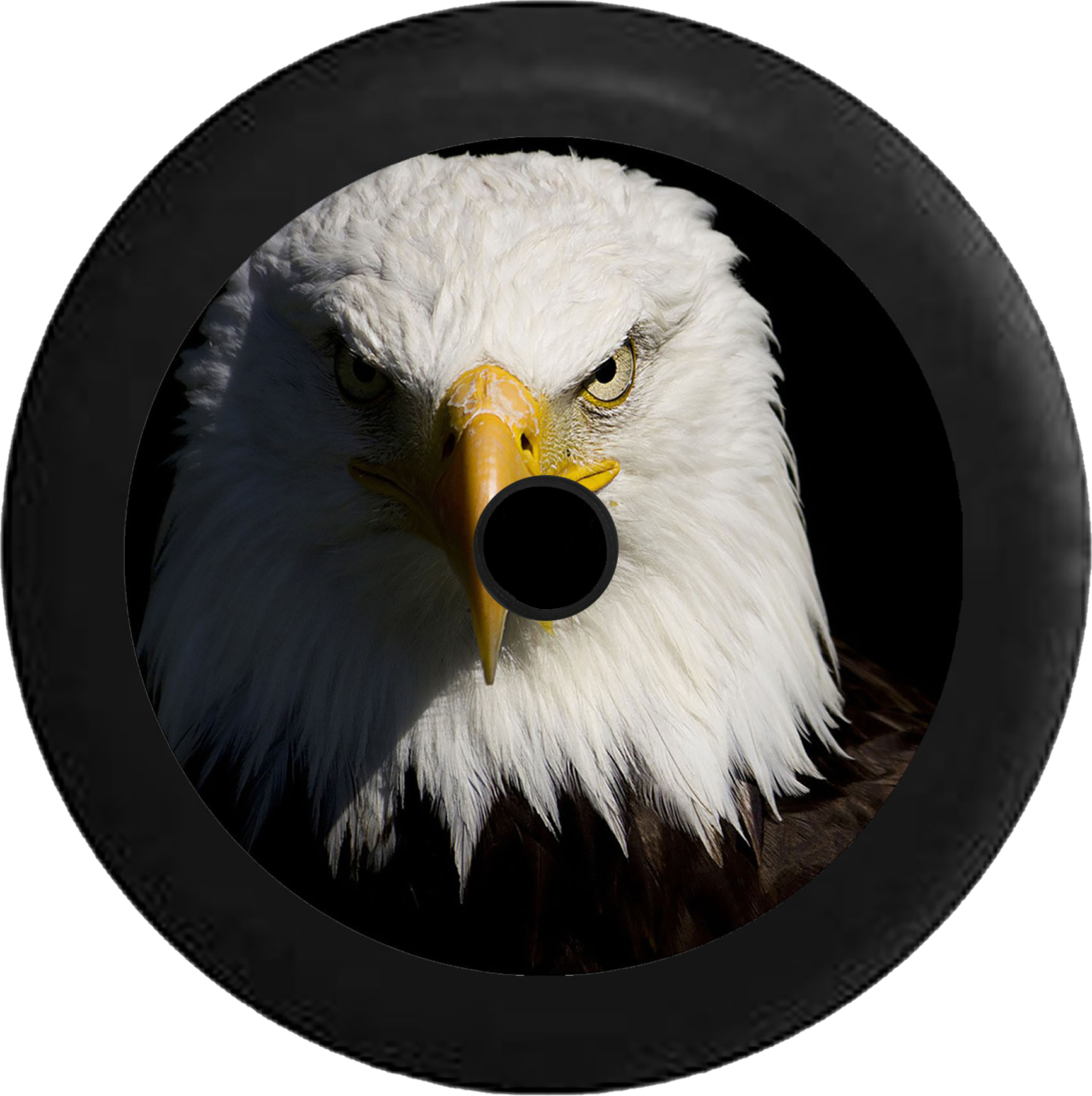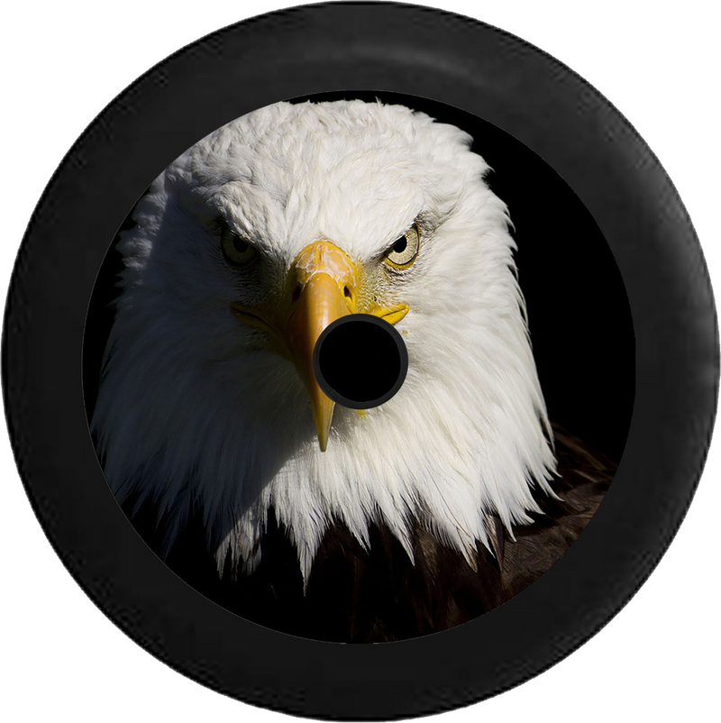 Jeep Wrangler JL Backup Camera Staring American Bald Eagle Closeup Jeep Camper Spare Tire Cover BLACK- - R248