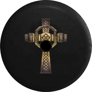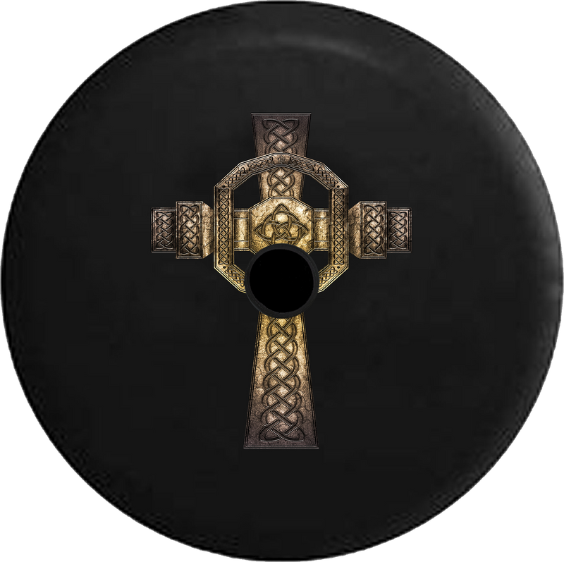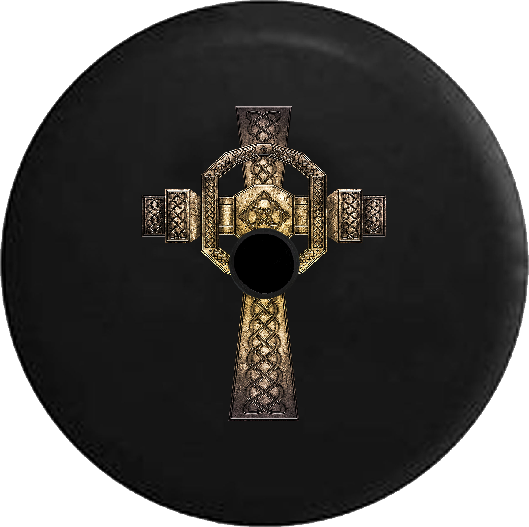 Jeep Wrangler JL Backup Camera Stone Celtic Cross Irish Eternity Knot RV Camper Spare Tire Cover-BLACK-