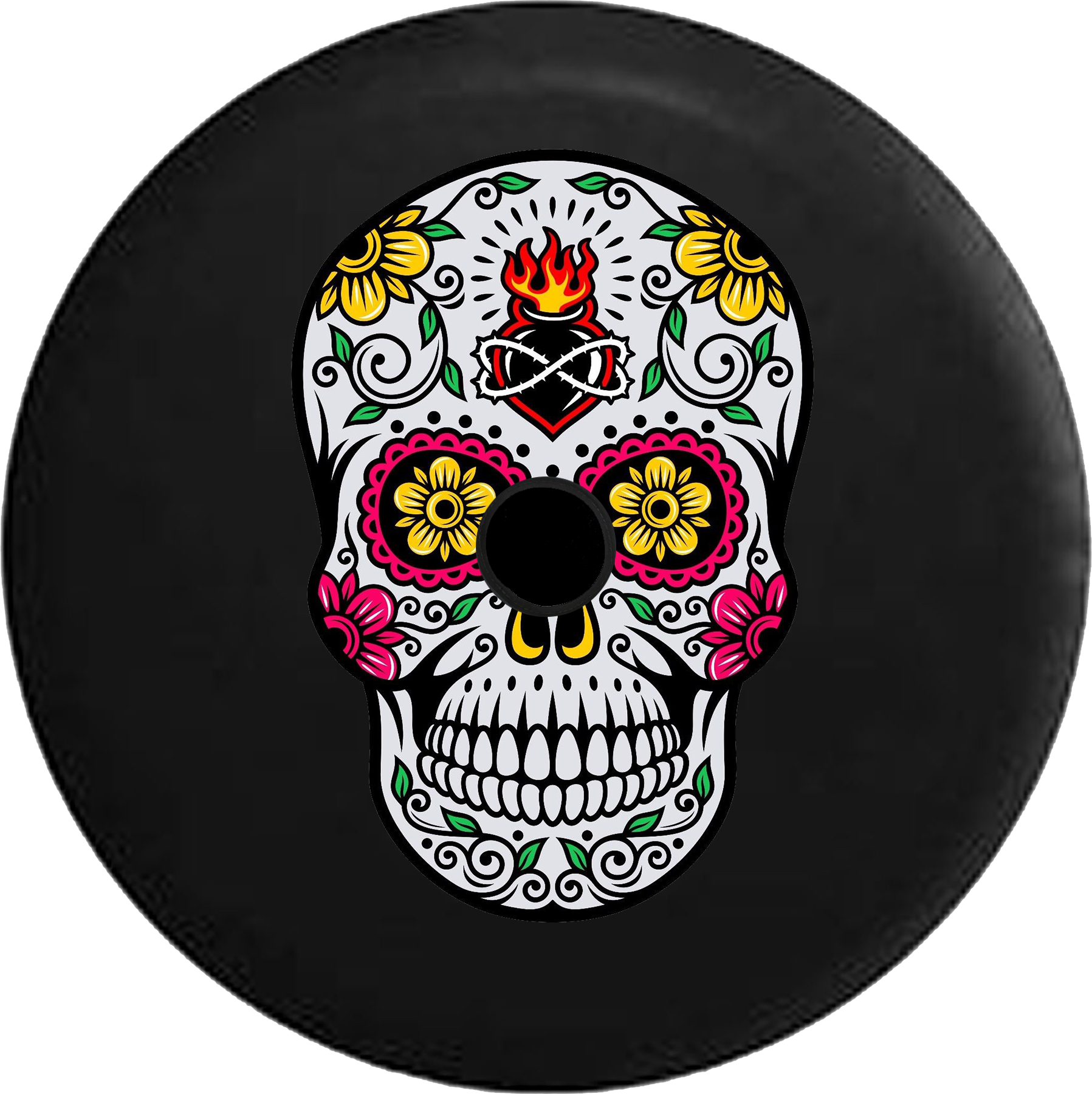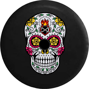 Jeep Wrangler JL Backup Camera Sugar Skull Tattoo Rose Heart Eyes RV Camper Spare Tire Cover-BLACK-