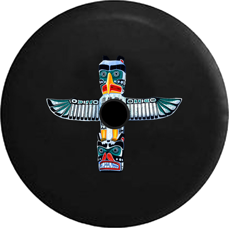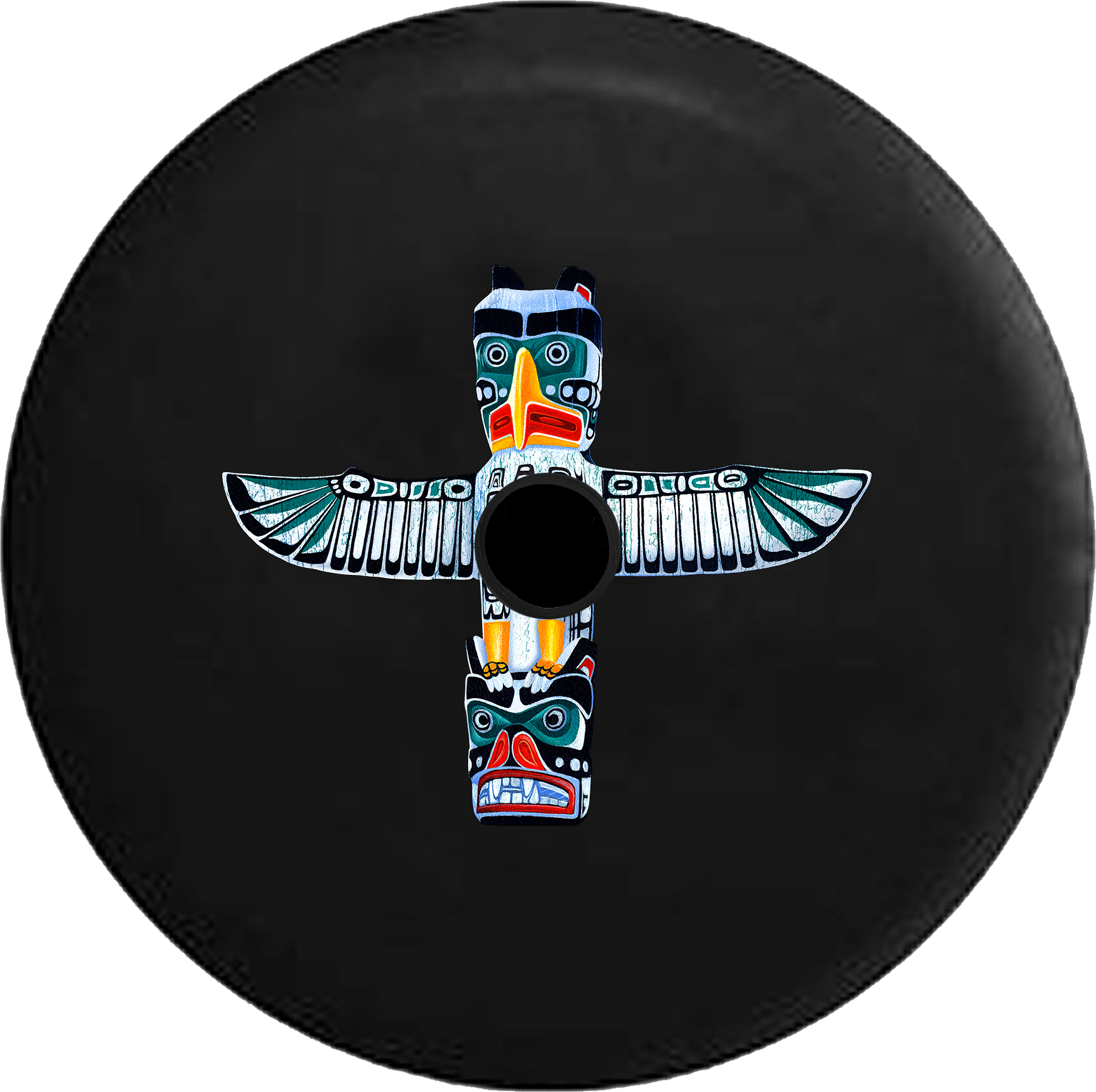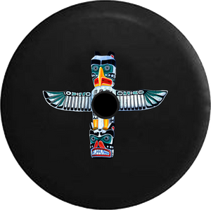 Jeep Wrangler JL Backup Camera Totem Pole Spirit Animals Native American God RV Camper Spare Tire Cover-BLACK-