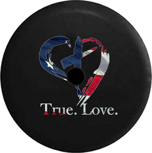 Jeep Wrangler JL Backup Camera True Love Christian Wood Cross in Heart God RV Camper Spare Tire Cover-BLACK-