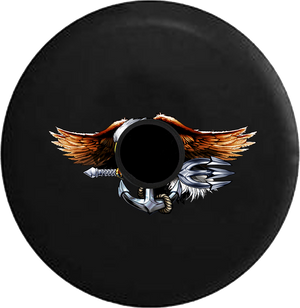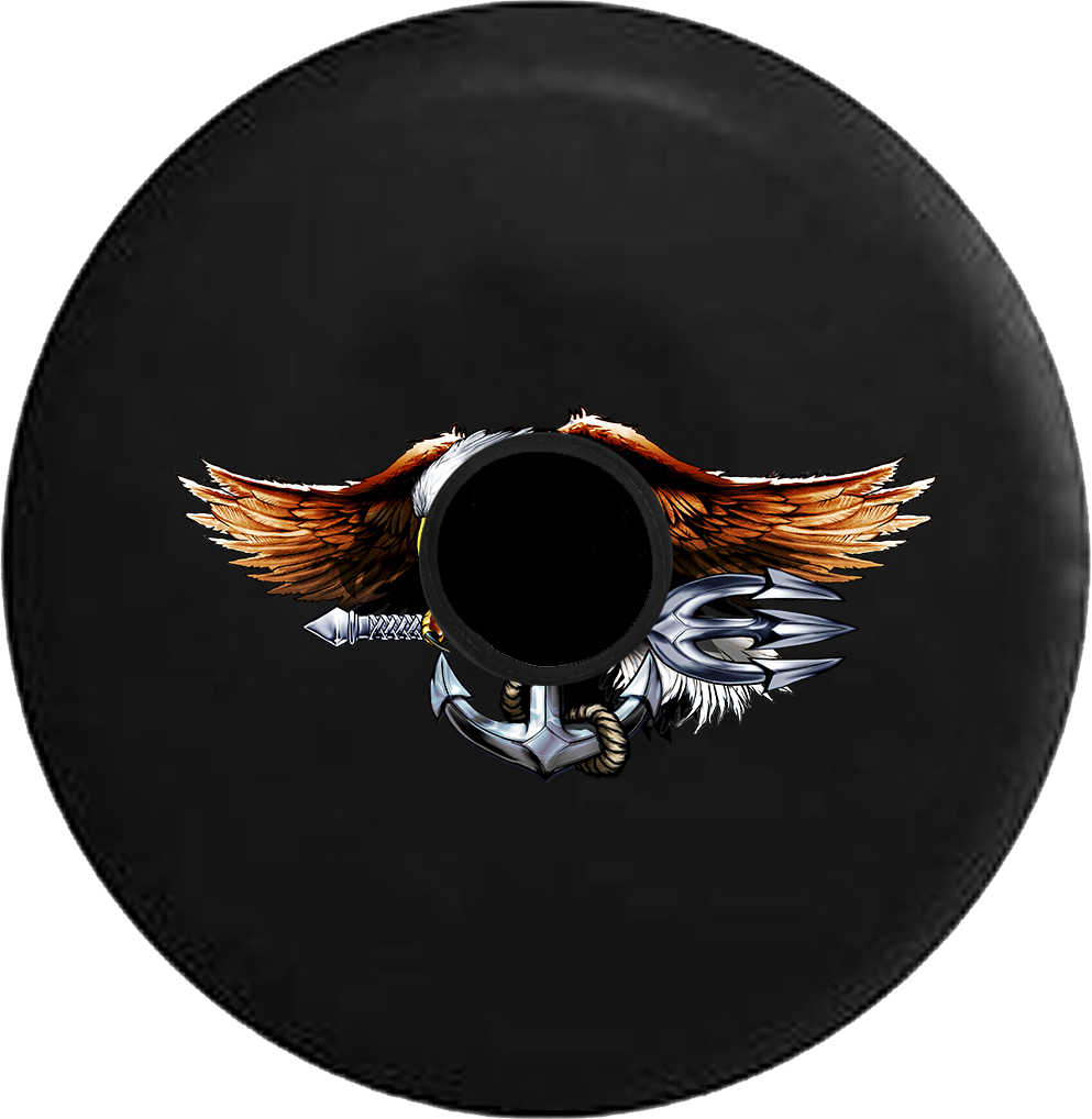 Jeep Wrangler JL Backup Camera US Navy Seals American Eagle with Silver Anchor RV Camper Spare Tire Cover-BLACK-