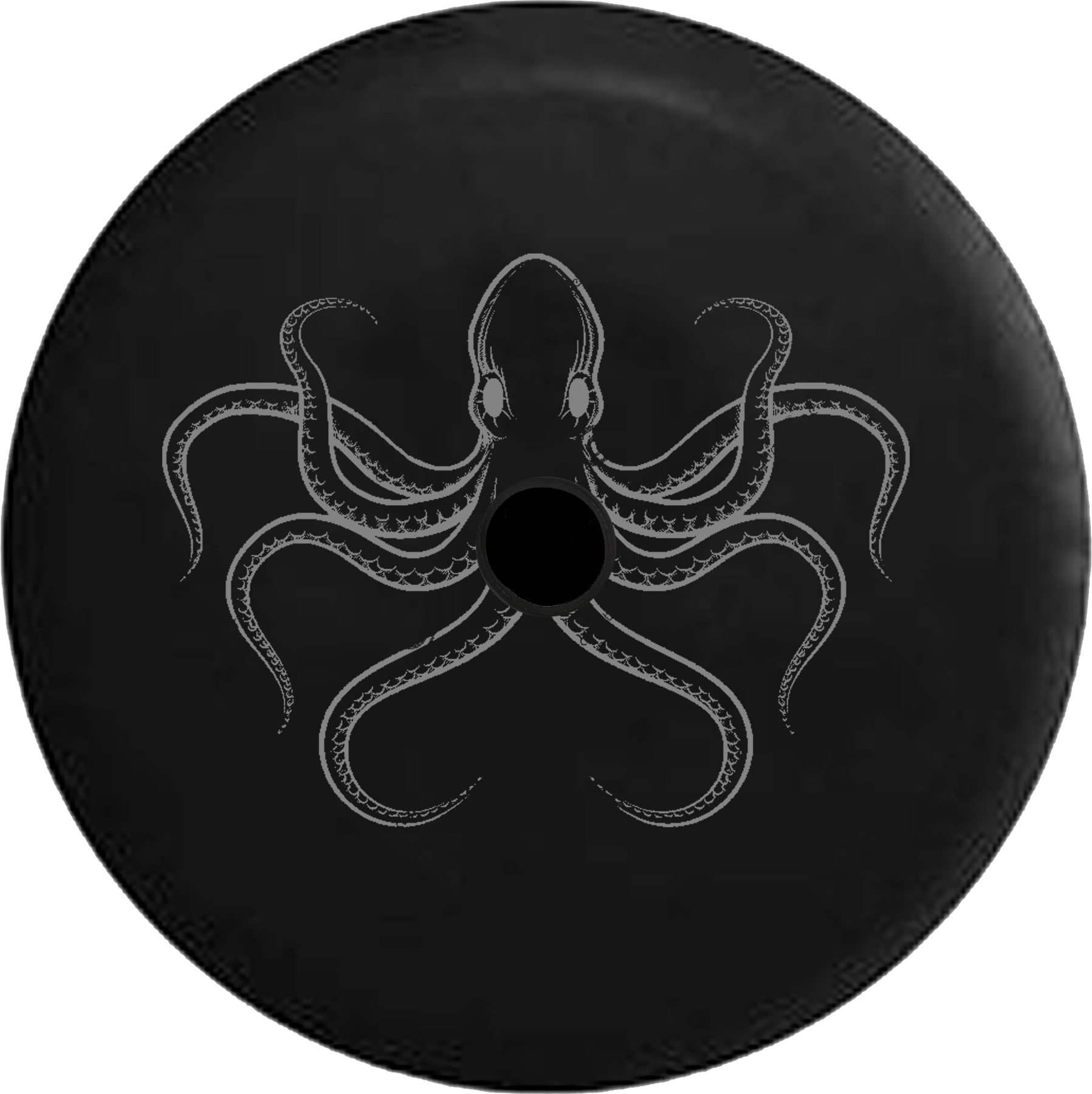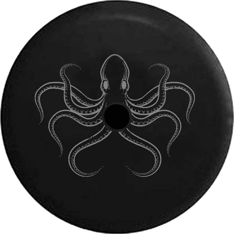 Jeep Wrangler JL Backup Camera Octopus Kracken Sea Monster Spare Tire Cover-BLACK-