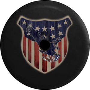 Jeep Wrangler JL Backup Camera Vintage American Flag Shield with American Eagle RV Camper Spare Tire Cover-BLACK-