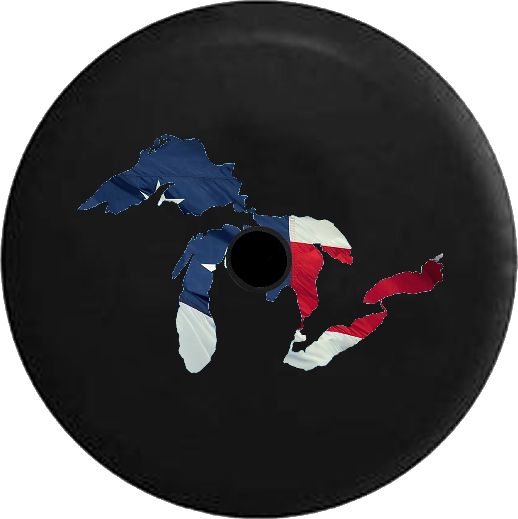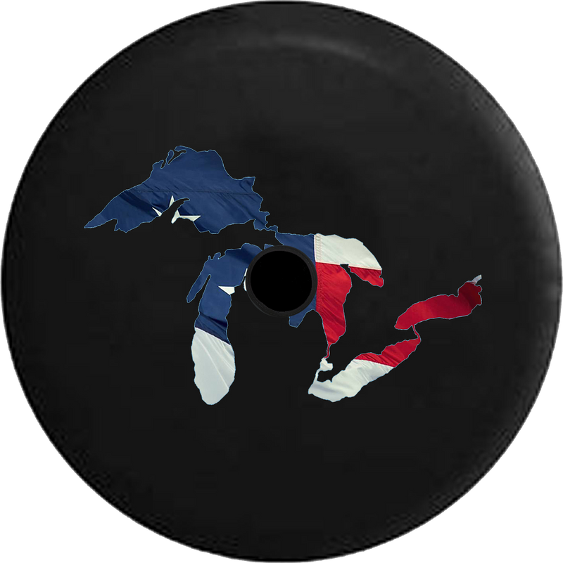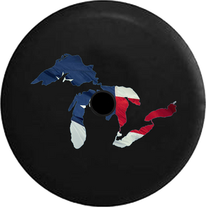 Jeep Wrangler JL Backup Camera Water Reflection Great Lakes Michigan Mitten RV Camper Spare Tire Cover-BLACK-
