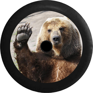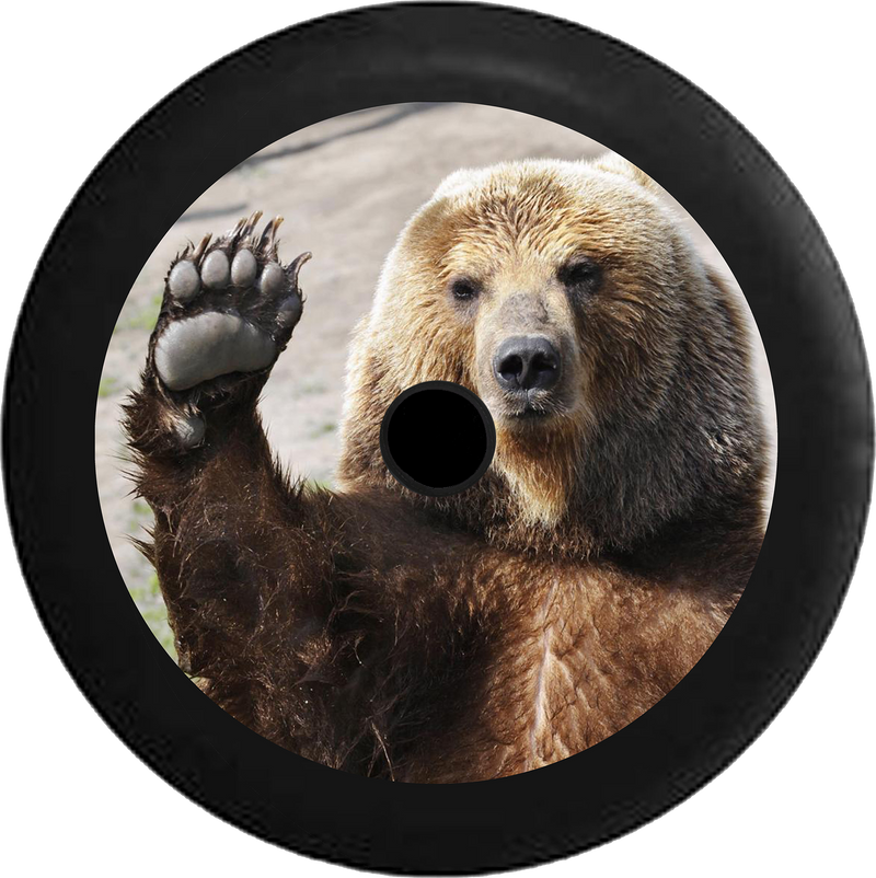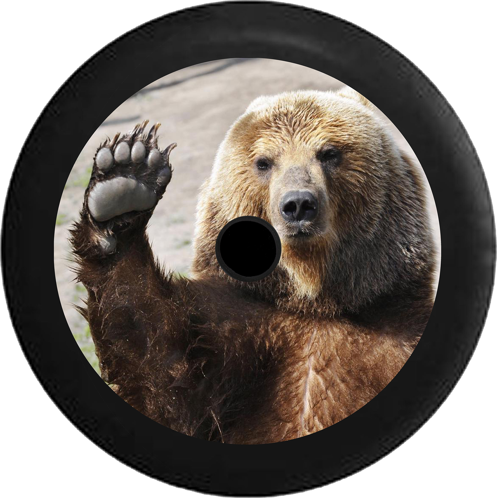 Jeep Wrangler JL Backup Camera Waving Brown Grizzly Bear Paw Wave Wildlife Jeep Camper Spare Tire Cover BLACK- - R126