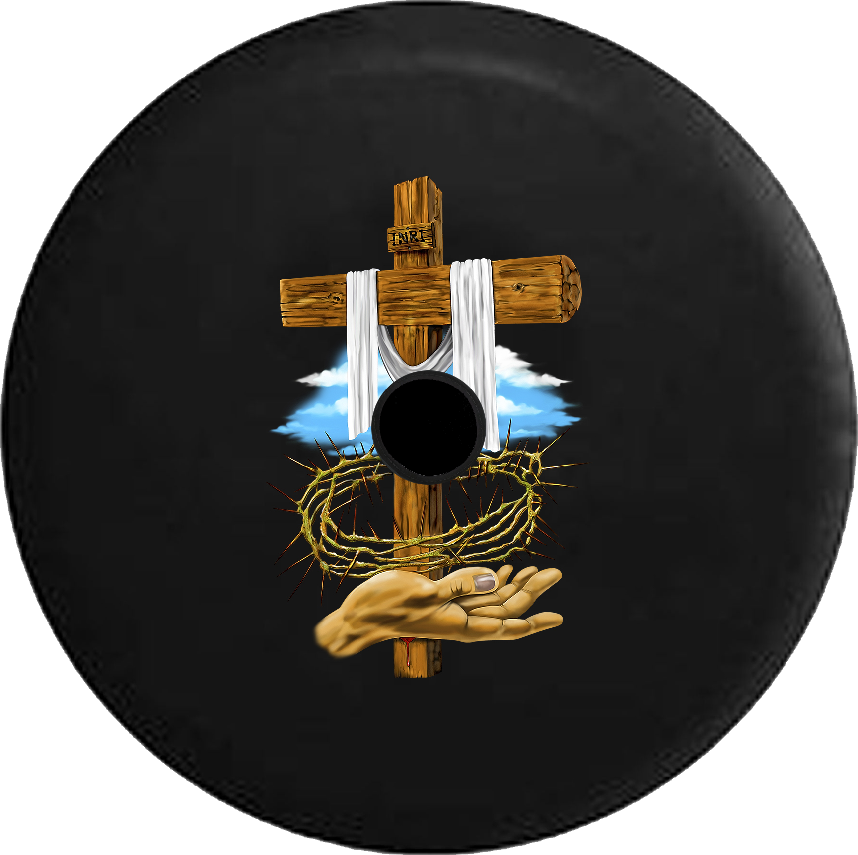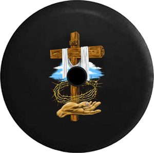 Jeep Wrangler JL Backup Camera Wooden Cross Crown of Thorns Jesus God Blessed Life RV Camper Spare Tire Cover-BLACK-