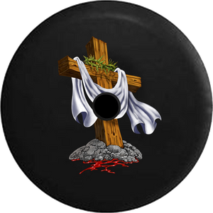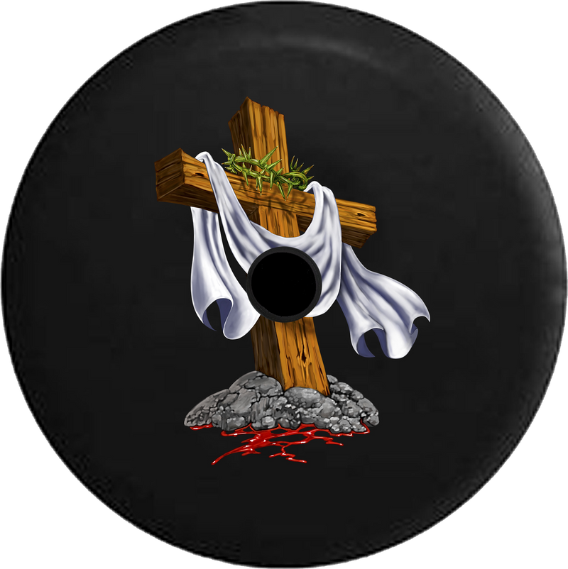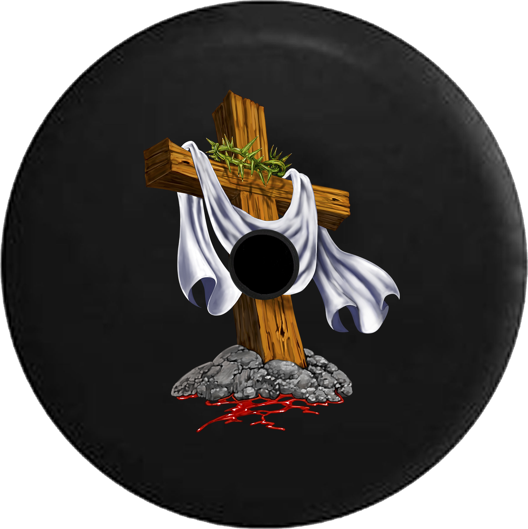 Jeep Wrangler JL Backup Camera Wooden Cross Holy Ghost Crown Jesus Crucifix RV Camper Spare Tire Cover-BLACK-