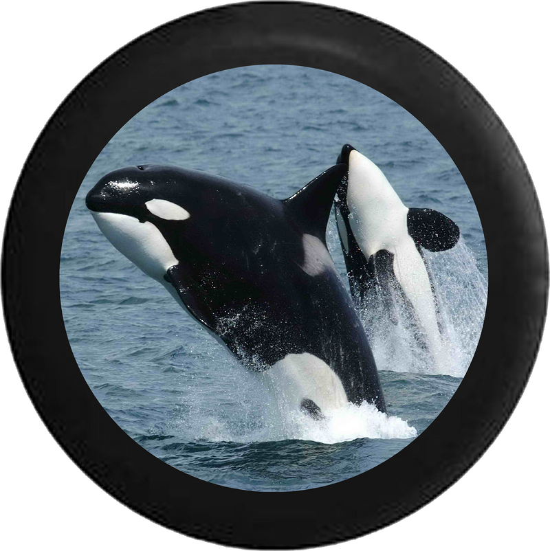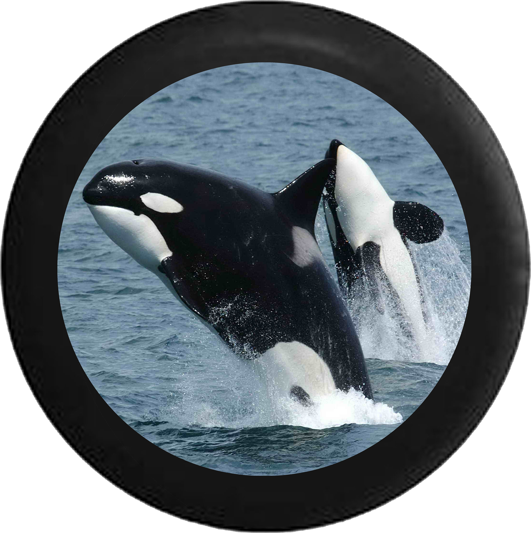 Killer Whale Orca Swimming Jumping Free RV Camper Spare Tire Cover-BLACK-