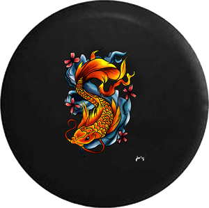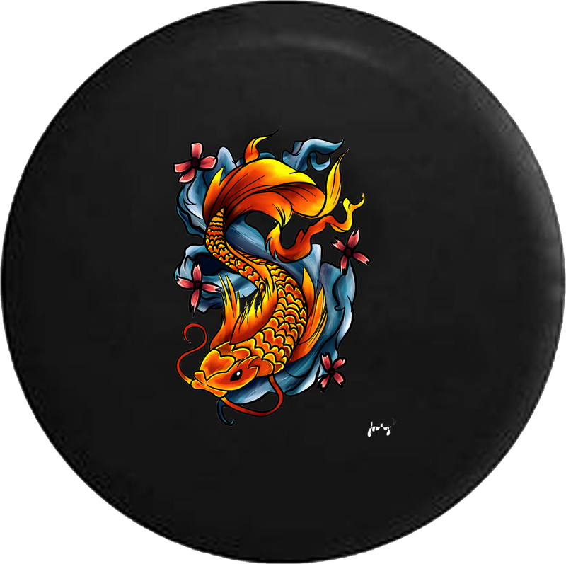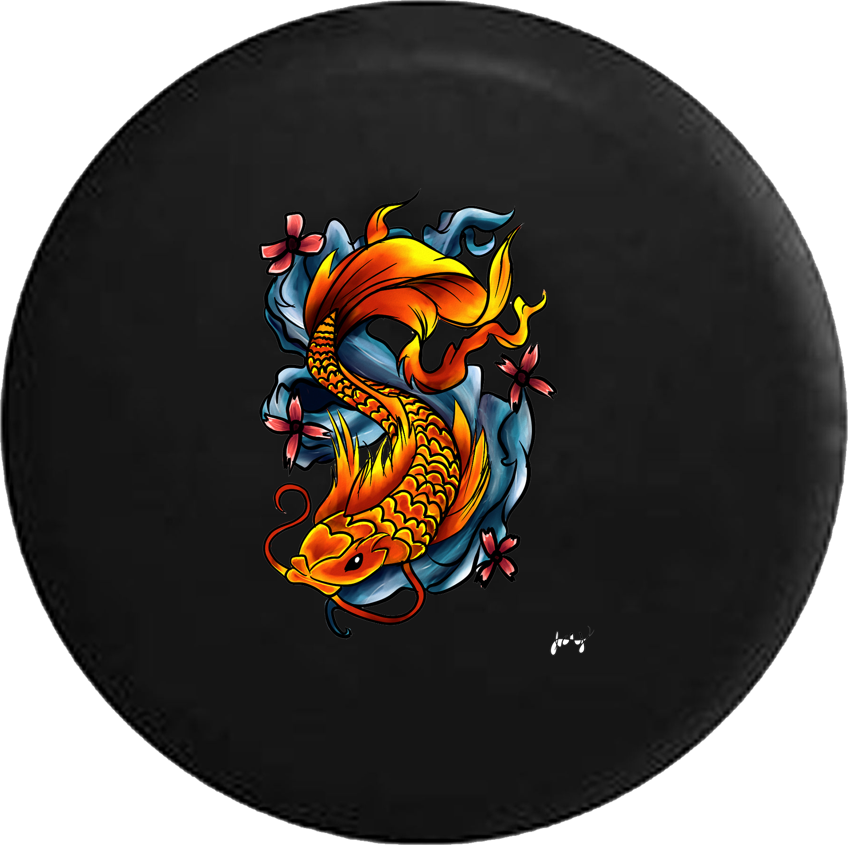 Koi Fish Tattoo Style Japanese Art RV Camper Spare Tire Cover-BLACK- -V428
