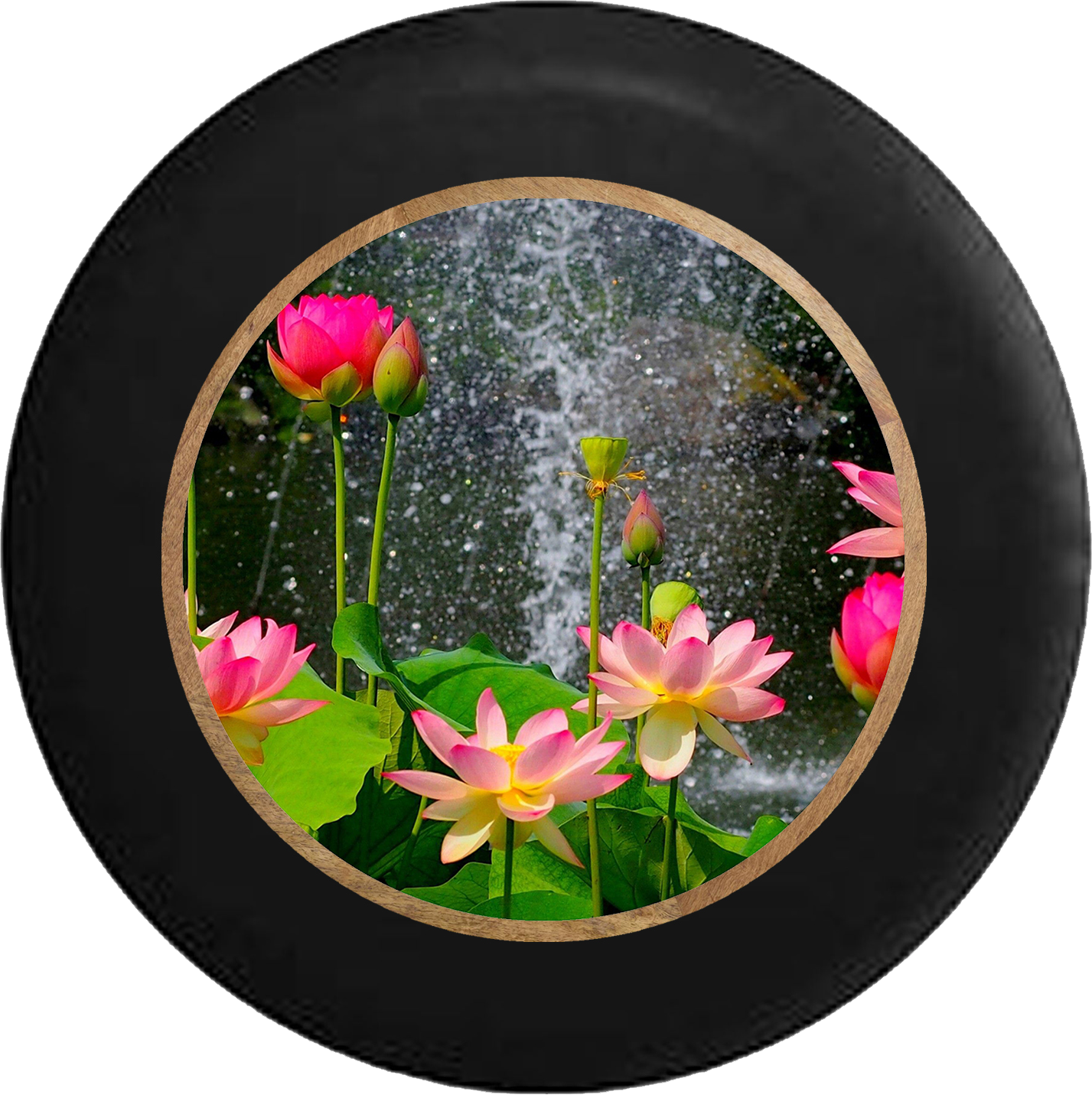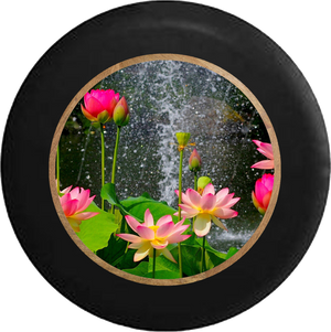 Lotus Blossom Waterfall Rain Flowers Jeep Camper Spare Tire Cover BLACK- - R327