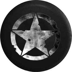 Oscar Mike Military Jeep Star Dark Smoke Silver Jeep Camper Spare Tire Cover Custom Size - V647