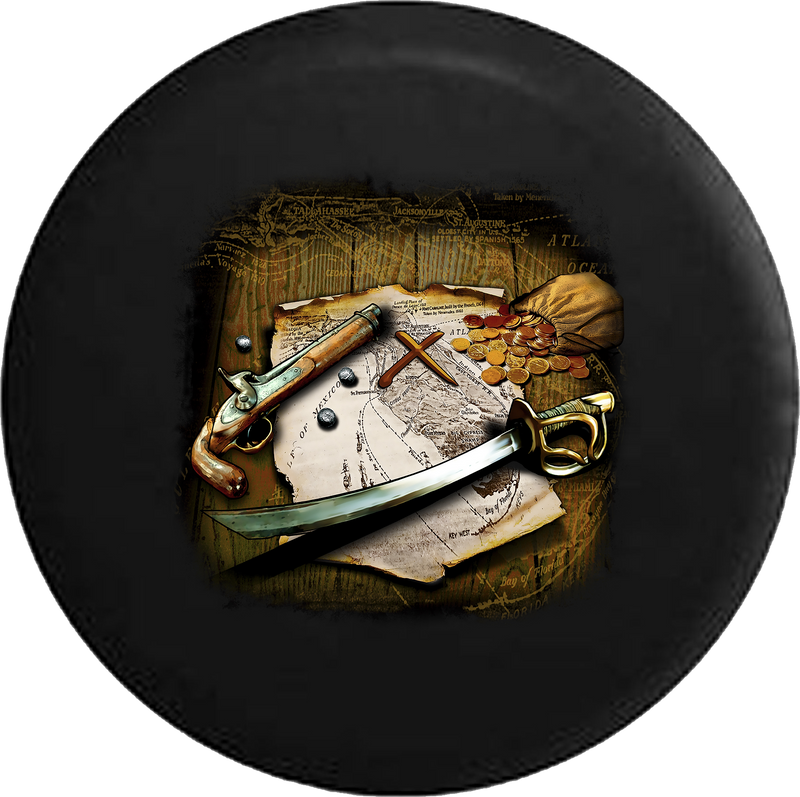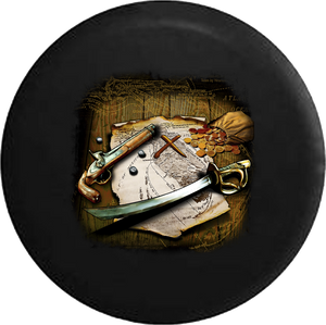 Pirate Ship Sword Gold Treasure Hunting Map Jeep Camper Spare Tire Cover Custom Size - V347