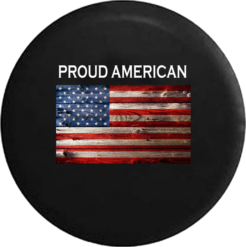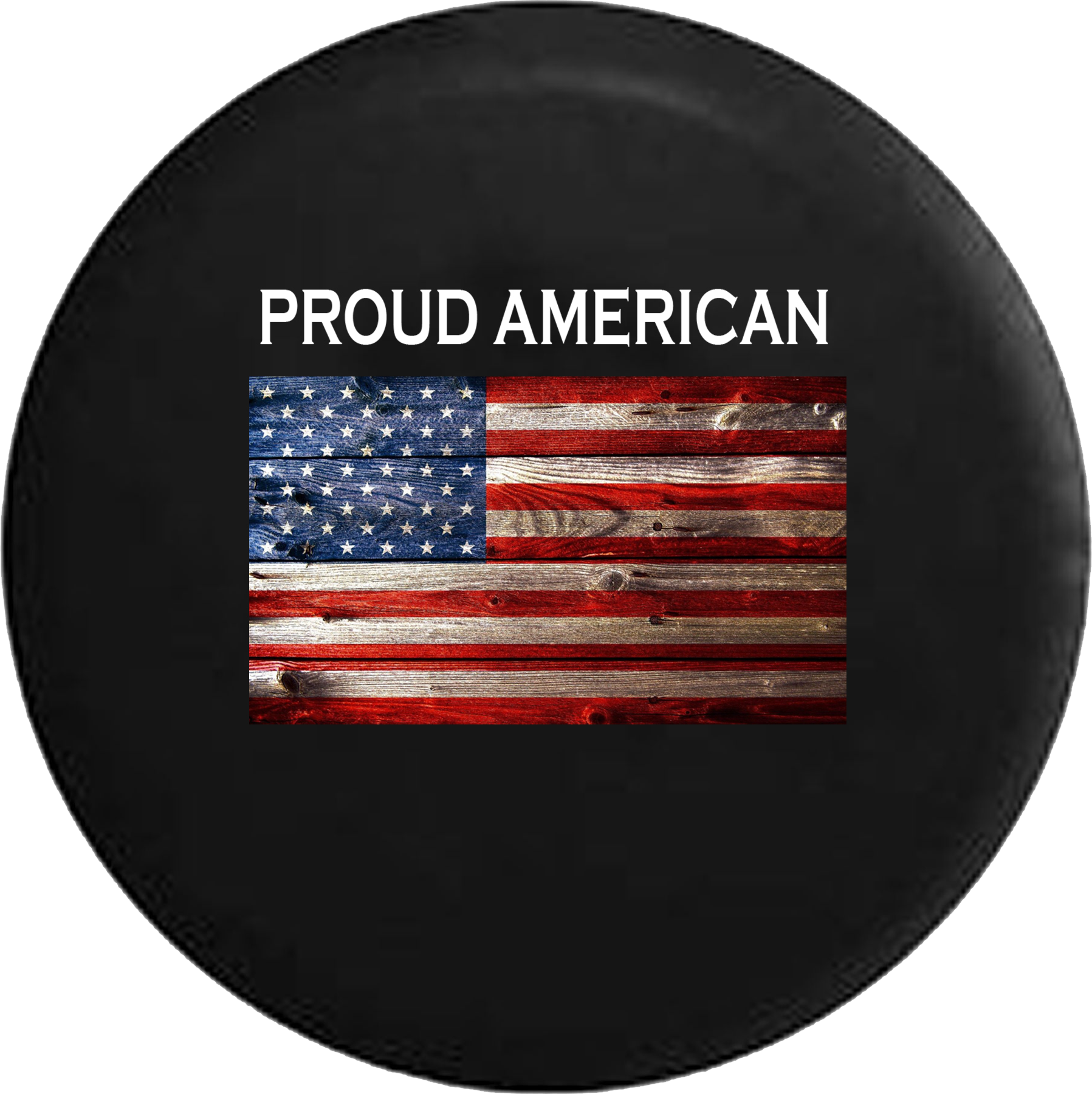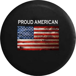 Proud American Vintage Rustic USA Flag Jeep Camper Spare Tire Cover Custom Size - V529