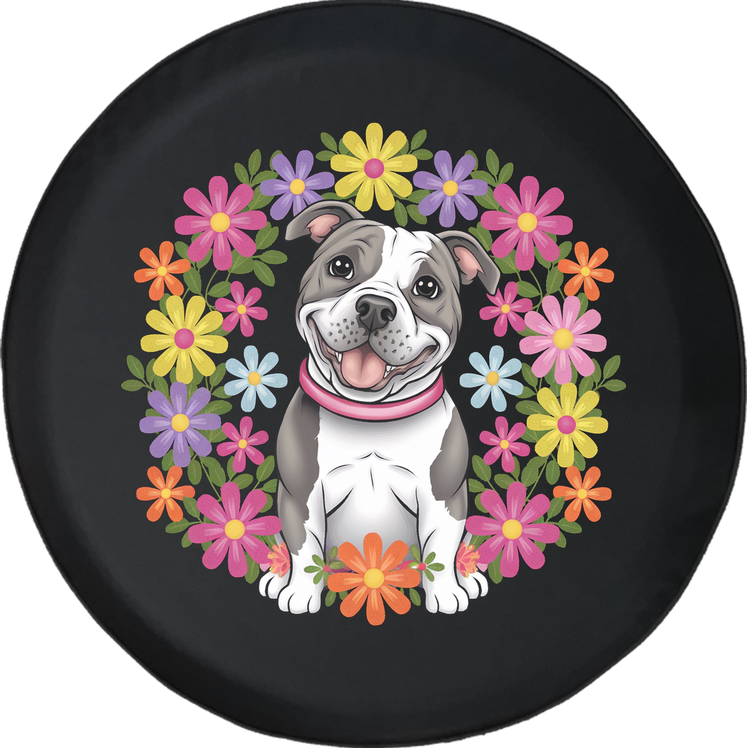 Pretty Flower Pittie Dog Pitbull Lover - Spare Tire Cover