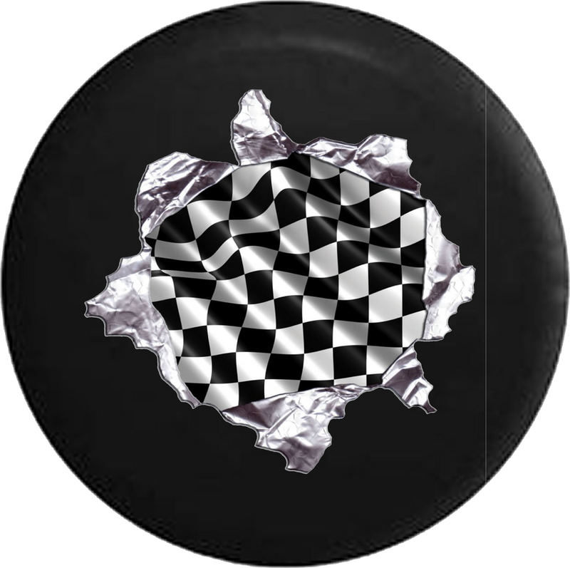 Racing Checkered Flag Tearing Through Jeep Camper Spare Tire Cover - P107