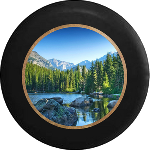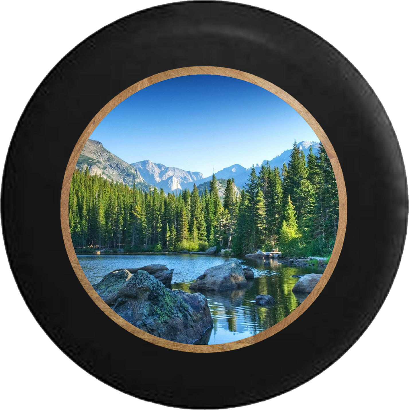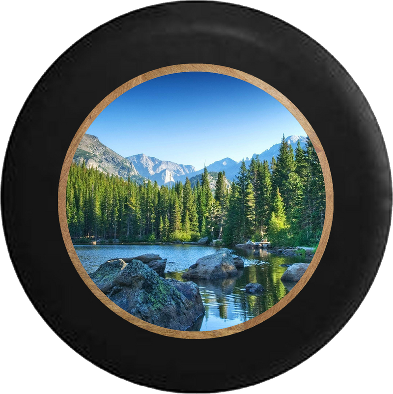 Rocky Mountain Pines Tree line Lake Jeep Camper Spare Tire Cover BLACK- - R349