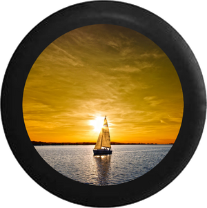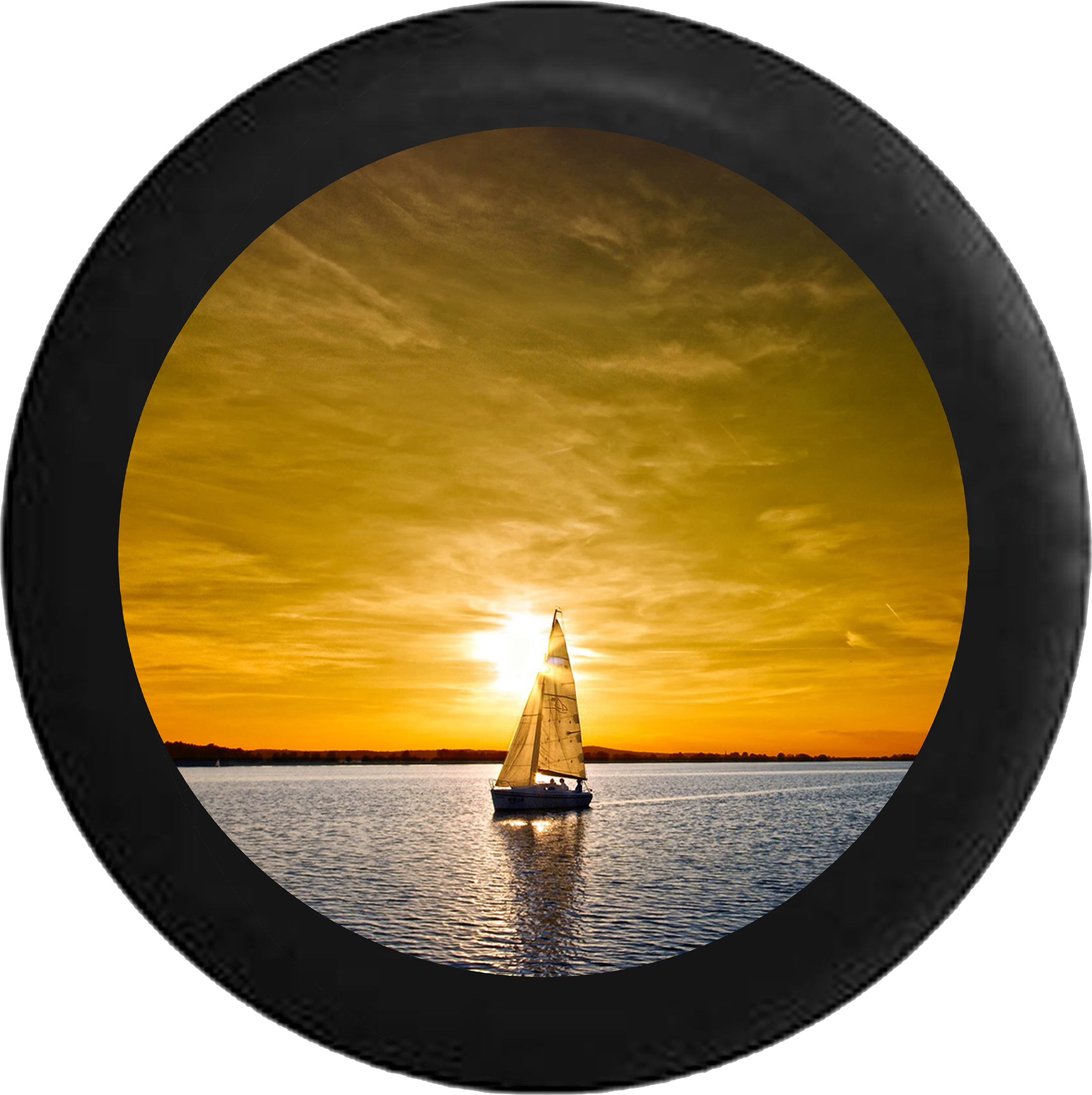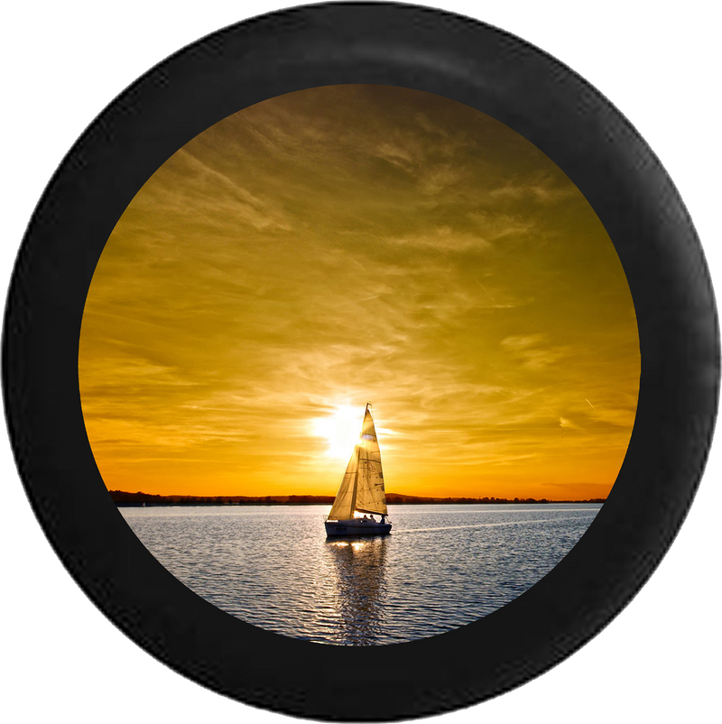 Sailboat Sailing lake with orange sky during sunset Jeep Camper Spare Tire Cover BLACK- - R119