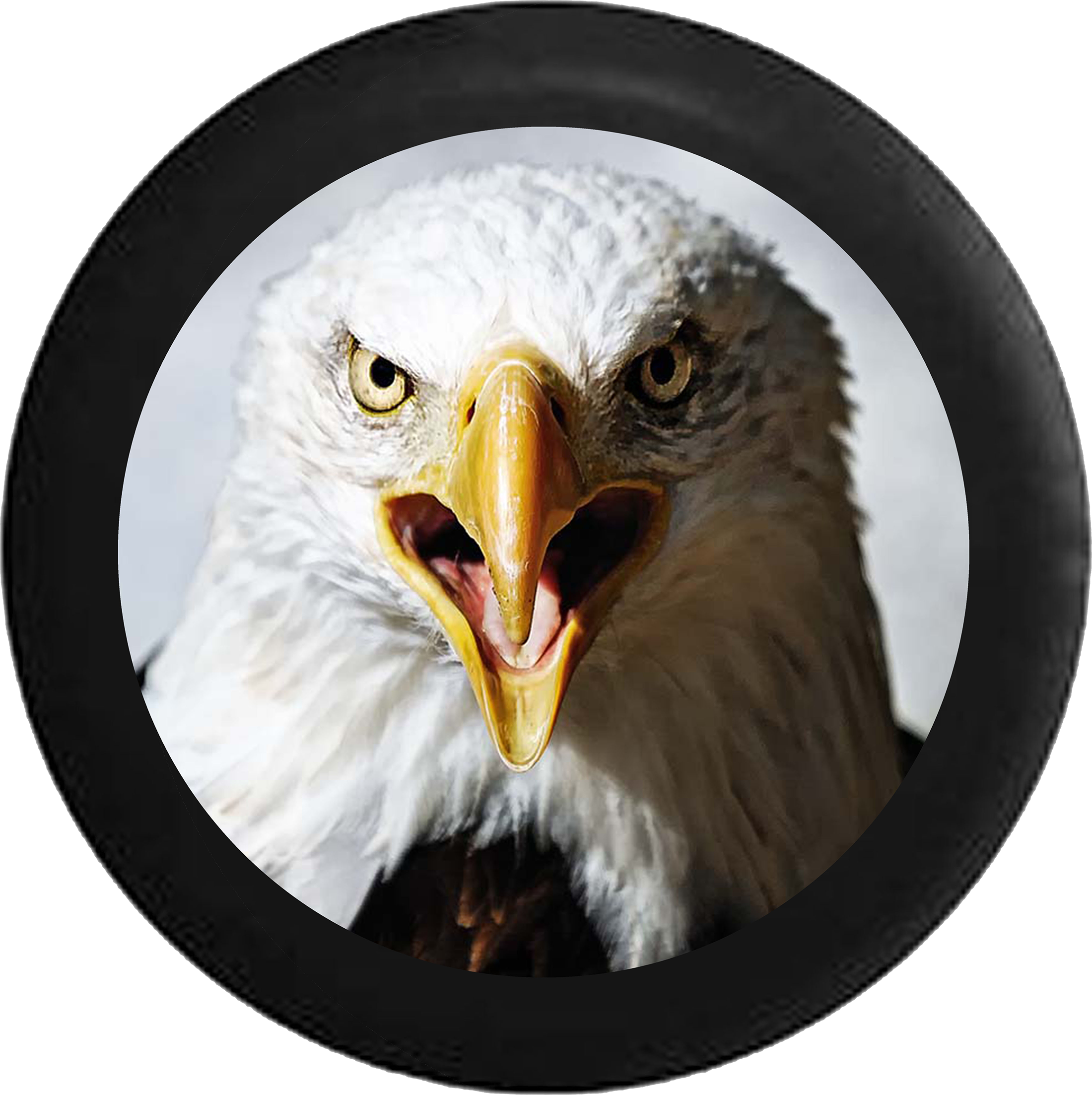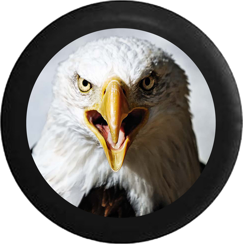 Screaming American Bald Eagle Patriotic Closeup Jeep Camper Spare Tire Cover BLACK- - R125