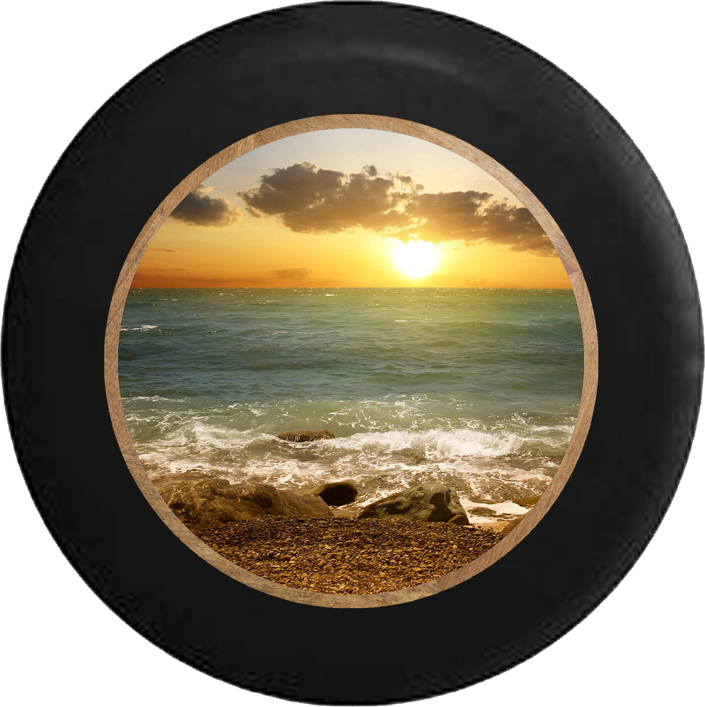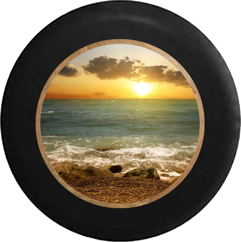 Seashore Ocean Tide Sunset Sunrise Coast Jeep Camper Spare Tire Cover BLACK- - R351