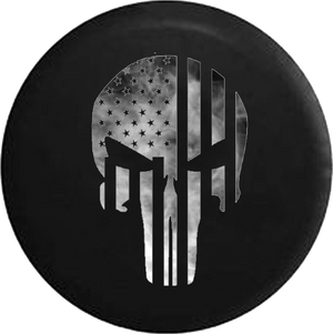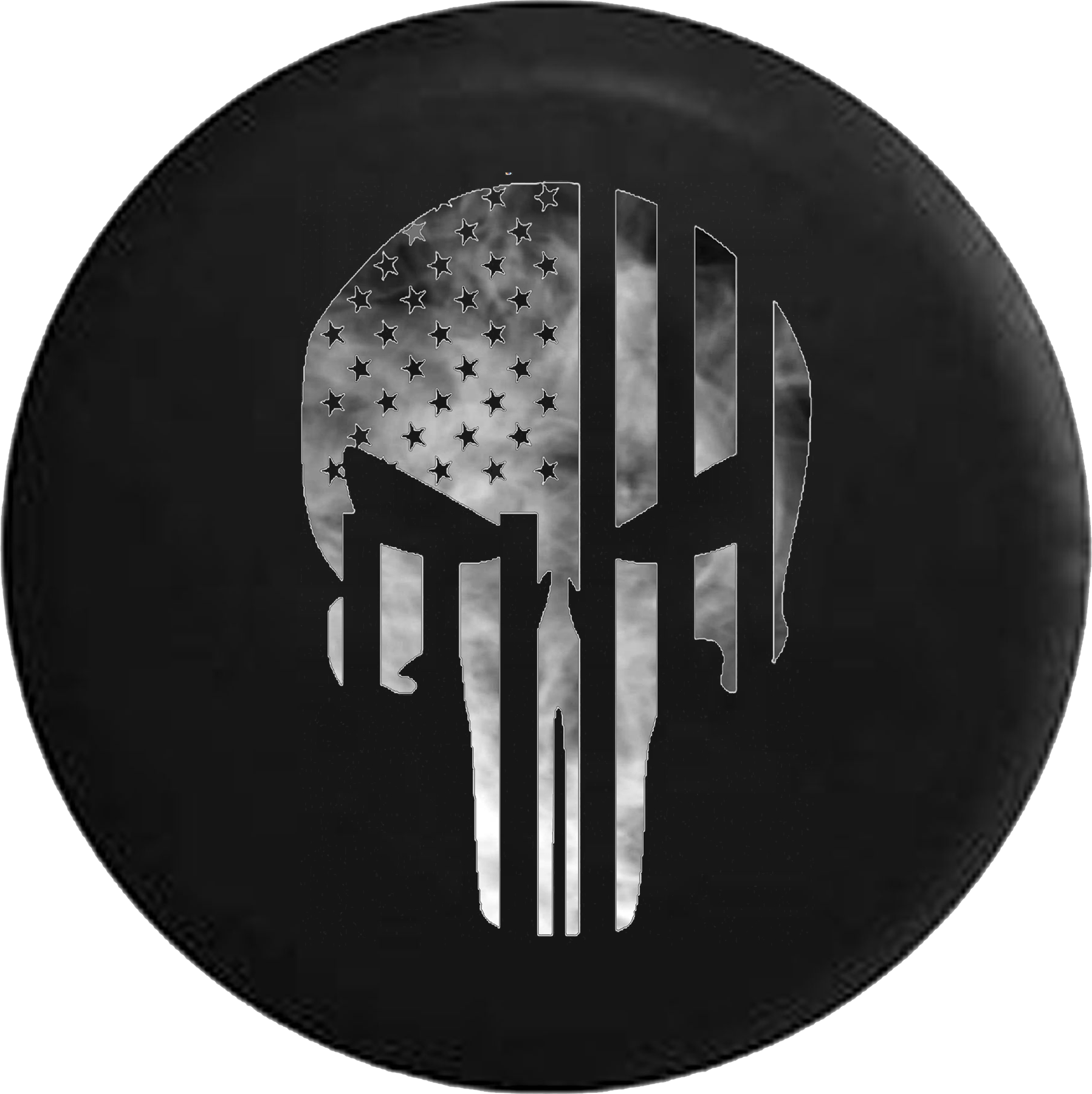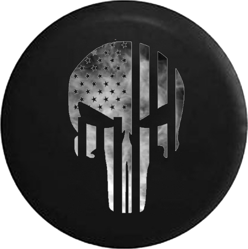 Smoked Out Tactical American Waving Flag Patriot Skull Jeep Camper Spare Tire Cover Custom Size - V582