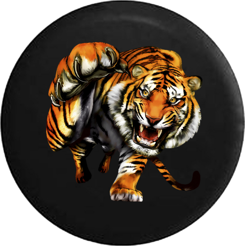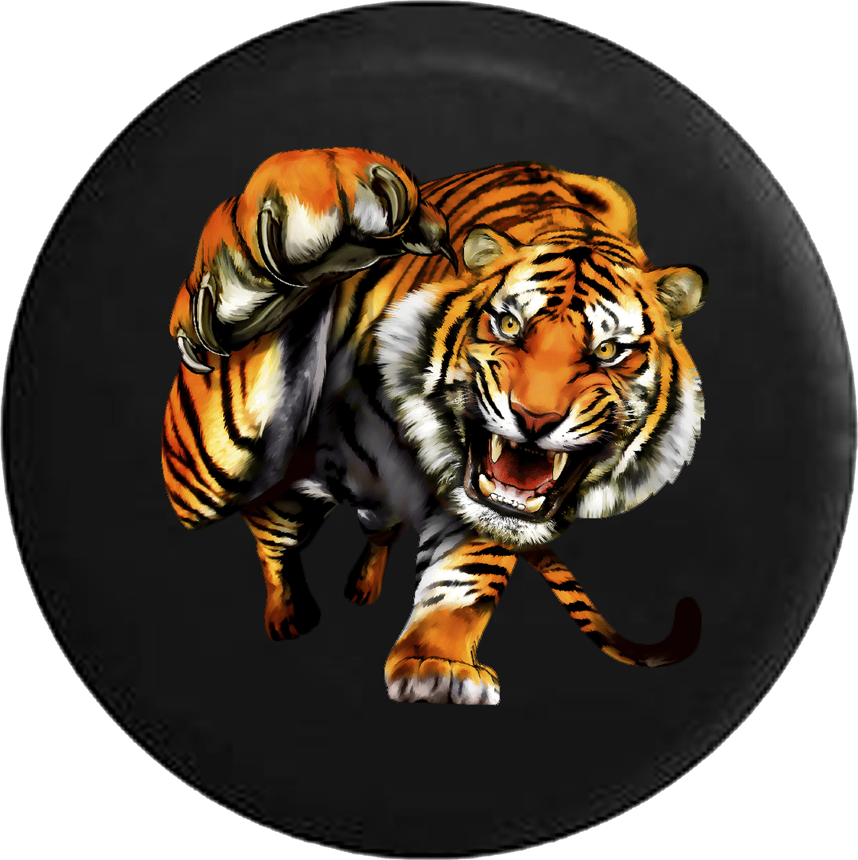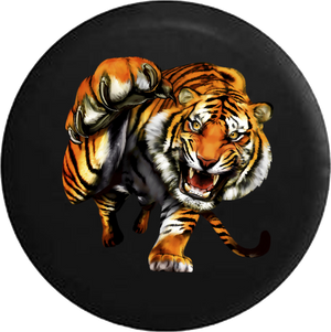 Striped Tiger Attacking Claws Out RV Camper Spare Tire Cover-BLACK- -V165