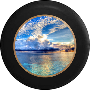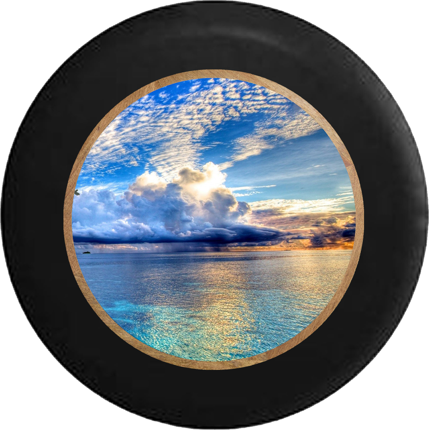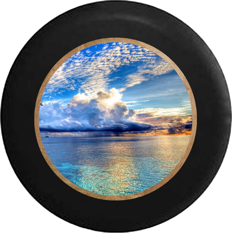 Sun Behind the Orange Clouds Storm Rolling In Jeep Camper Spare Tire Cover BLACK- - R352