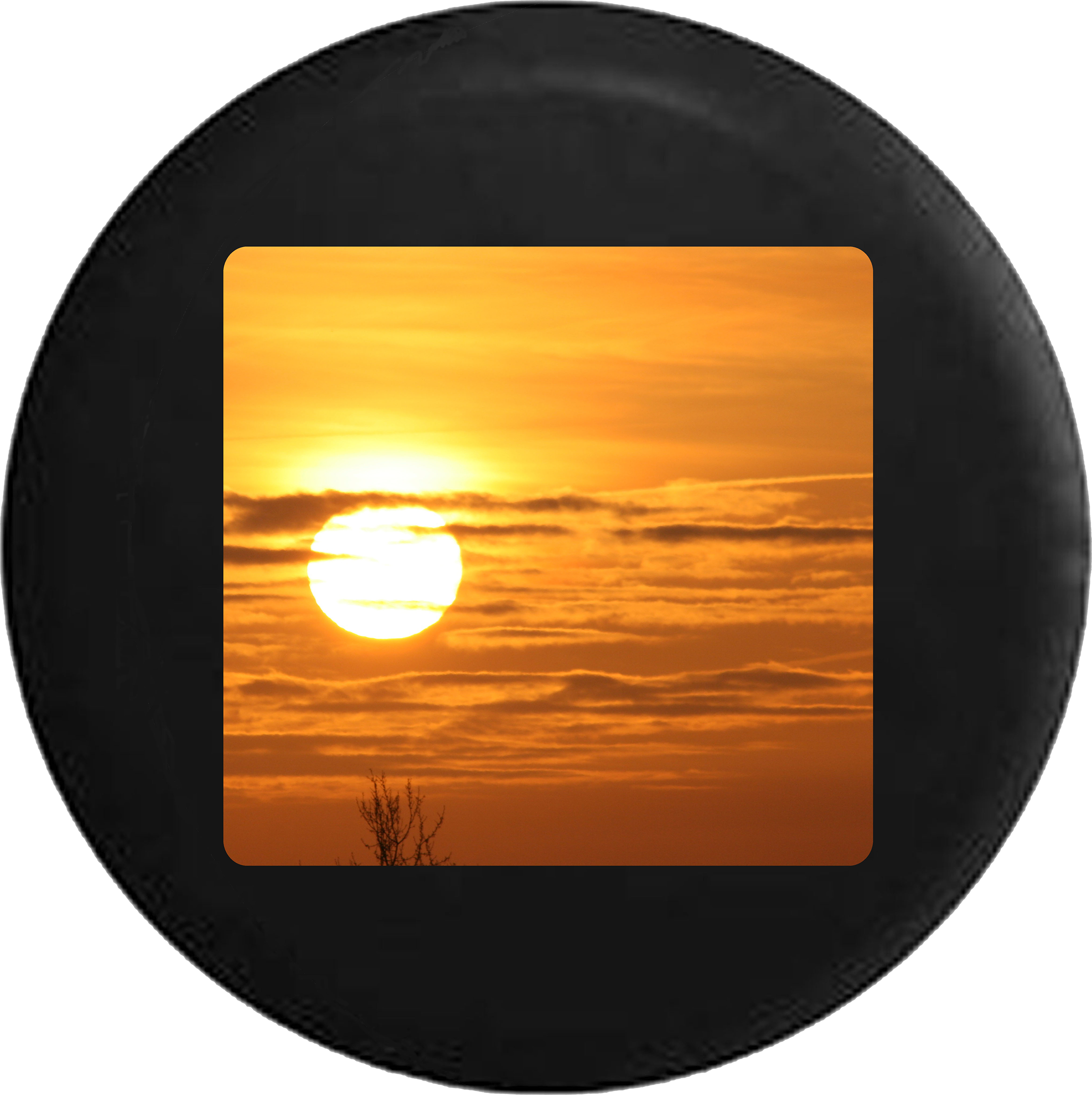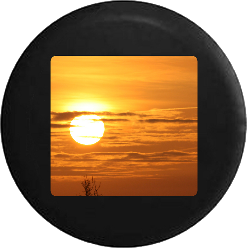 Sunrise Sunset Golden Sky and Clouds Jeep Camper Spare Tire Cover BLACK- - R155