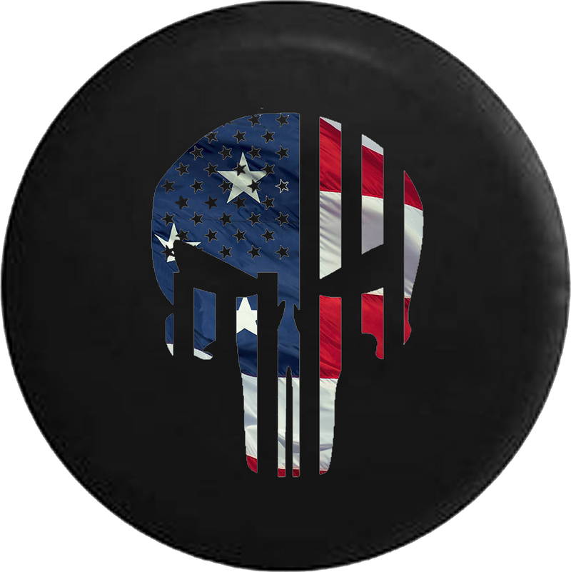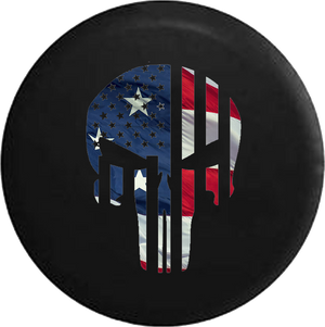 Tactical American Waving Flag Patriot Skull Jeep Camper Spare Tire Cover Custom Size - V580