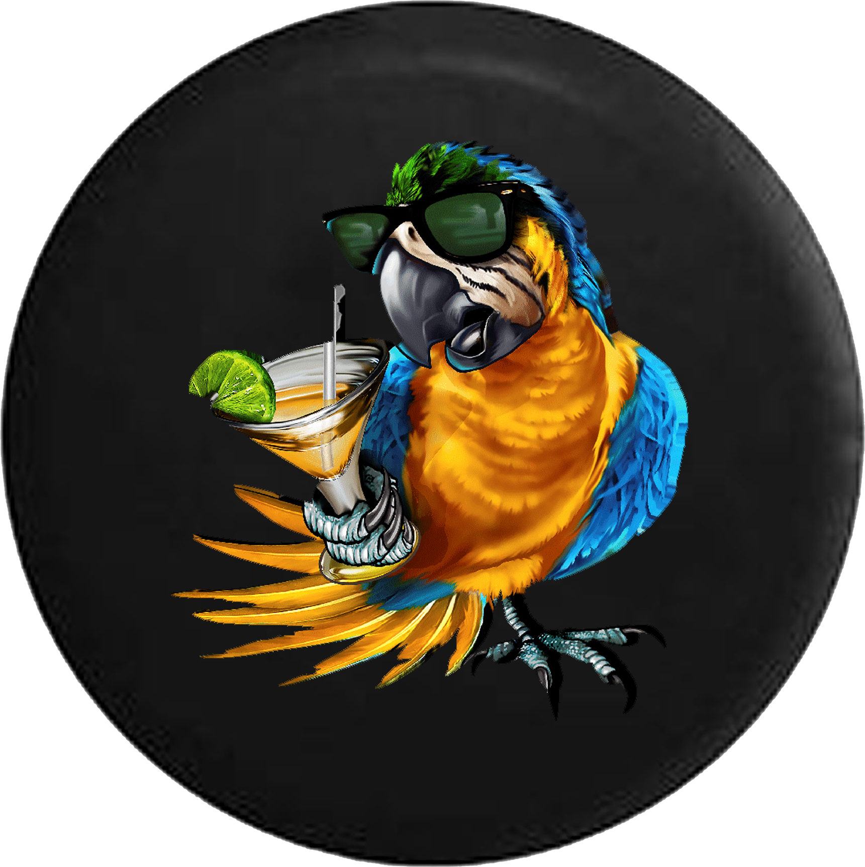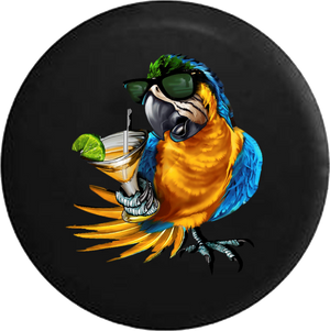 Tropical Parrot Macaw with Sunglass & Cocktail RV Camper Spare Tire Cover-BLACK- -V163