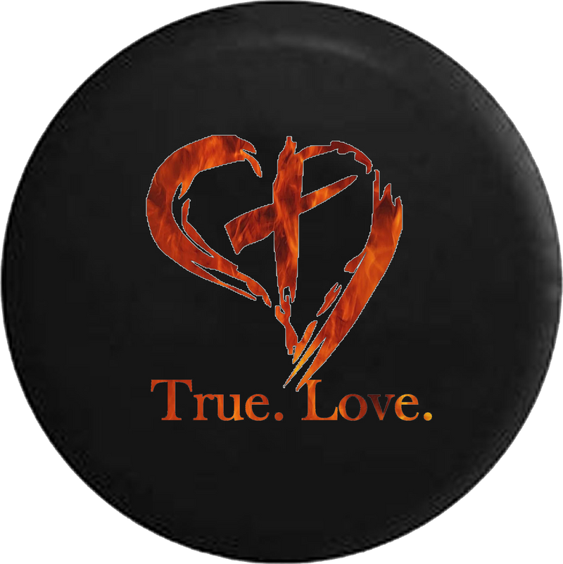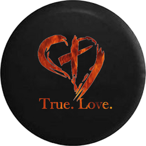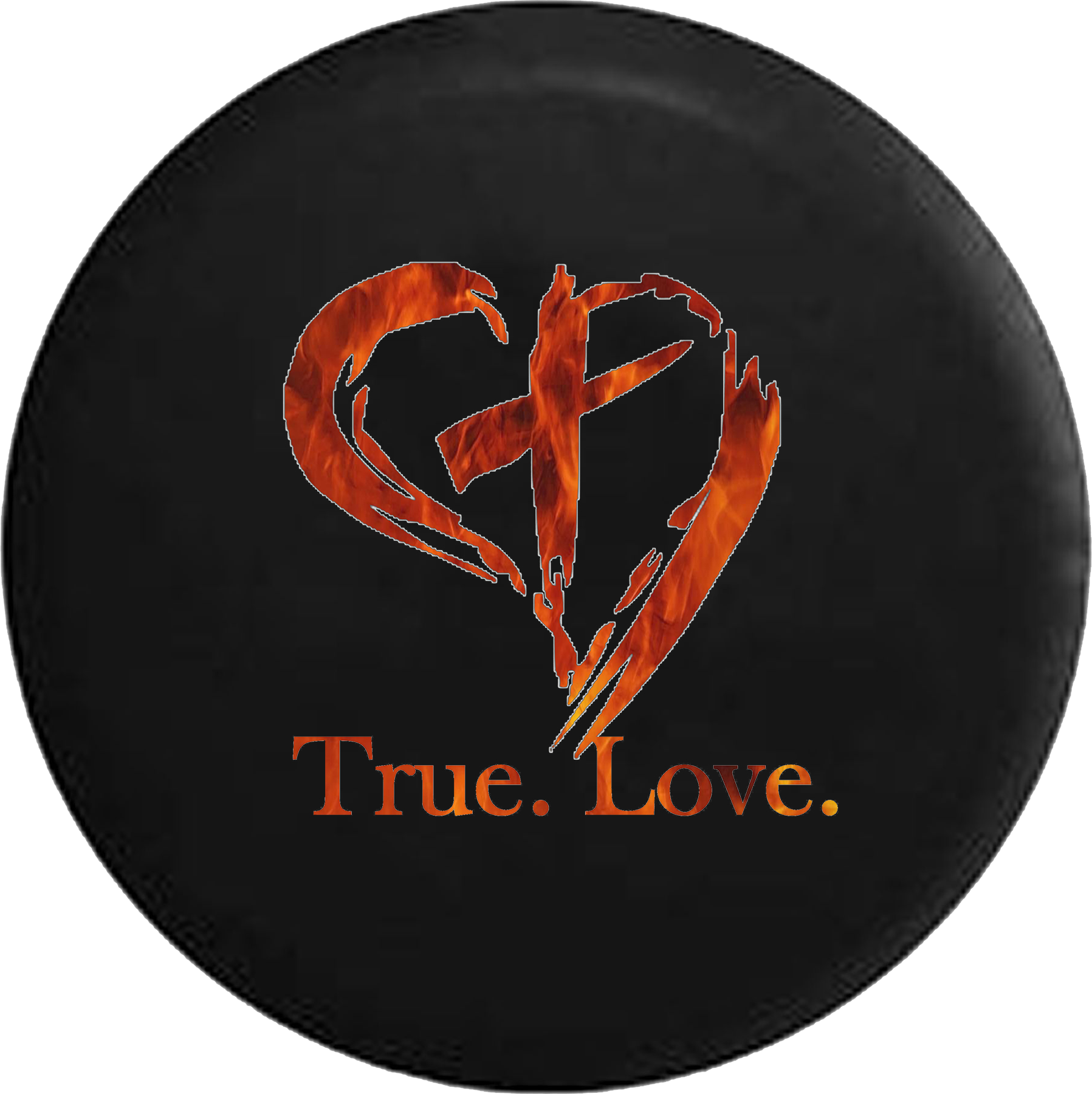 True Love Christian Cross in Heart Flames Fire God Jeep Camper Spare Tire Cover Custom Size - V630