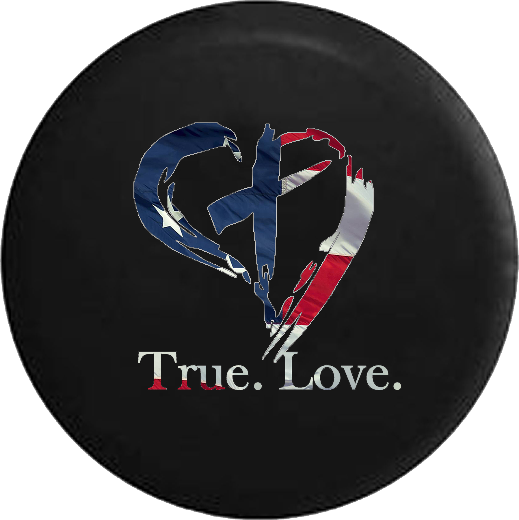 True Love Christian Cross in Heart God American Flag Jeep Camper Spare Tire Cover Custom Size - V631