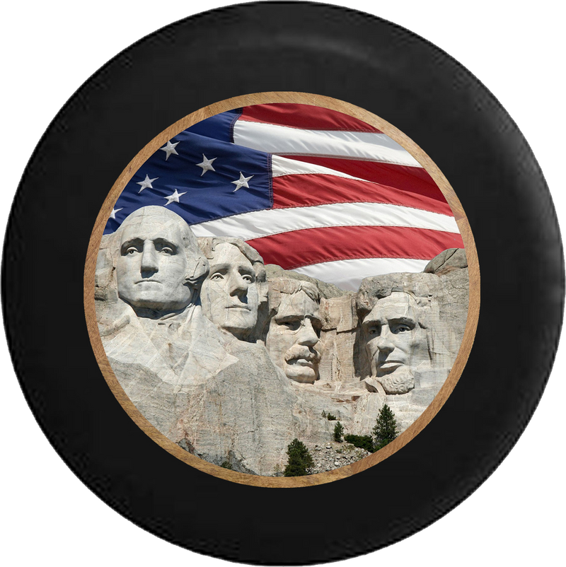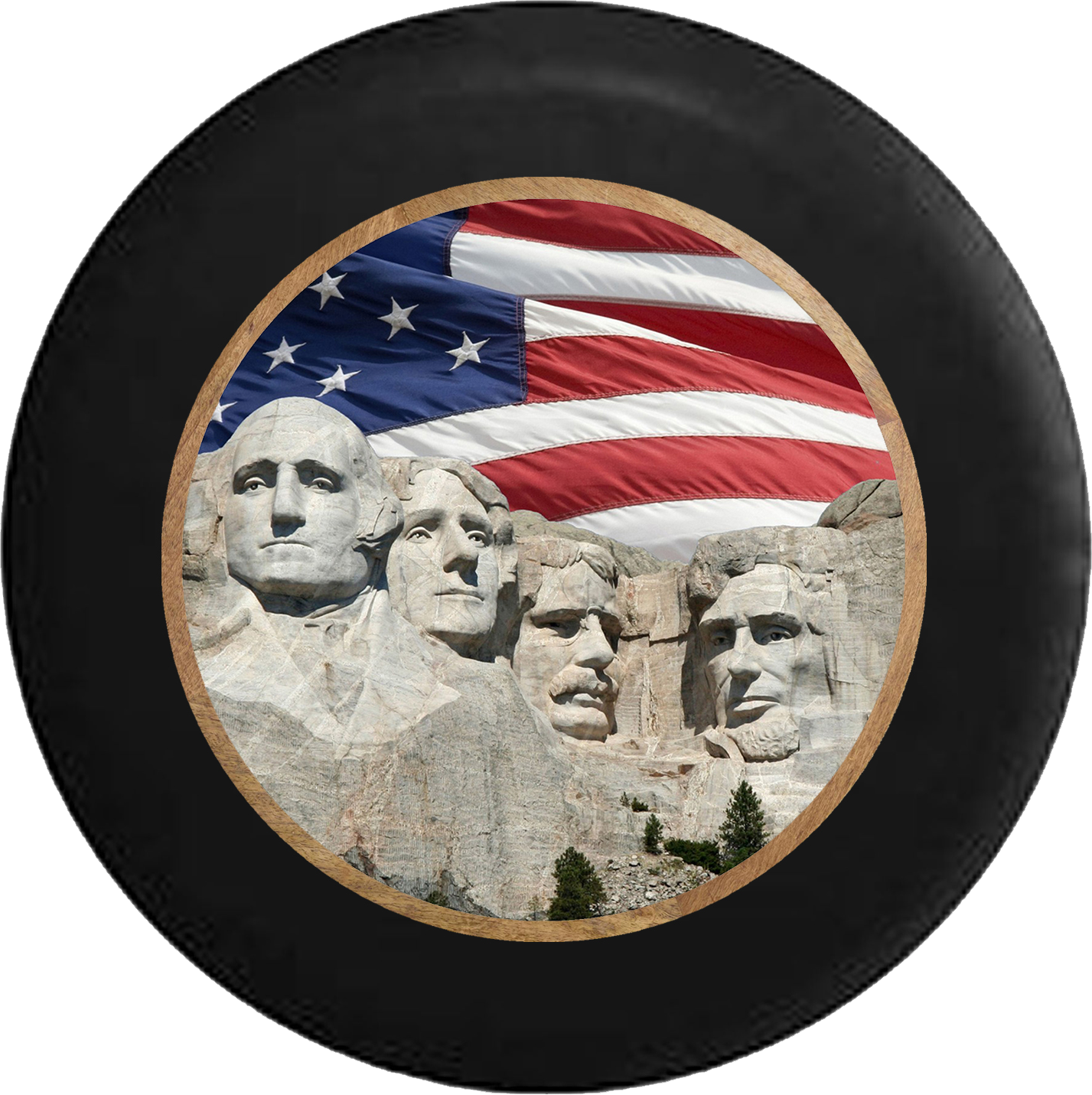 US Flag Mount Rushmore Closeup Jeep Camper Spare Tire Cover BLACK- - R331