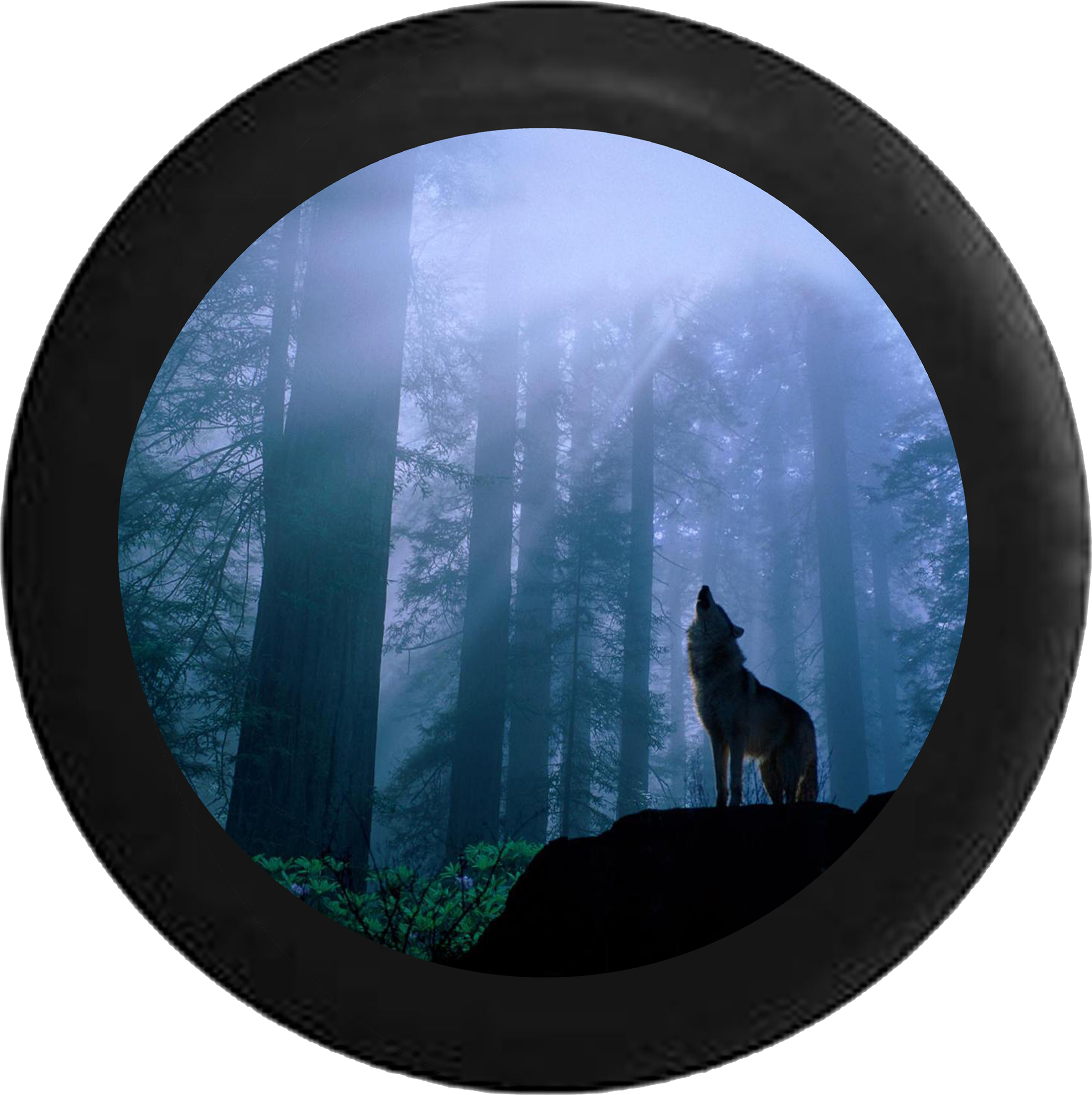 Wolf Howling at the Moon Forest Lone Predator Jeep Camper Spare Tire Cover BLACK- - R158