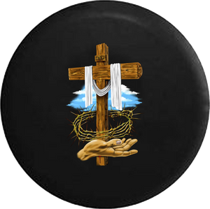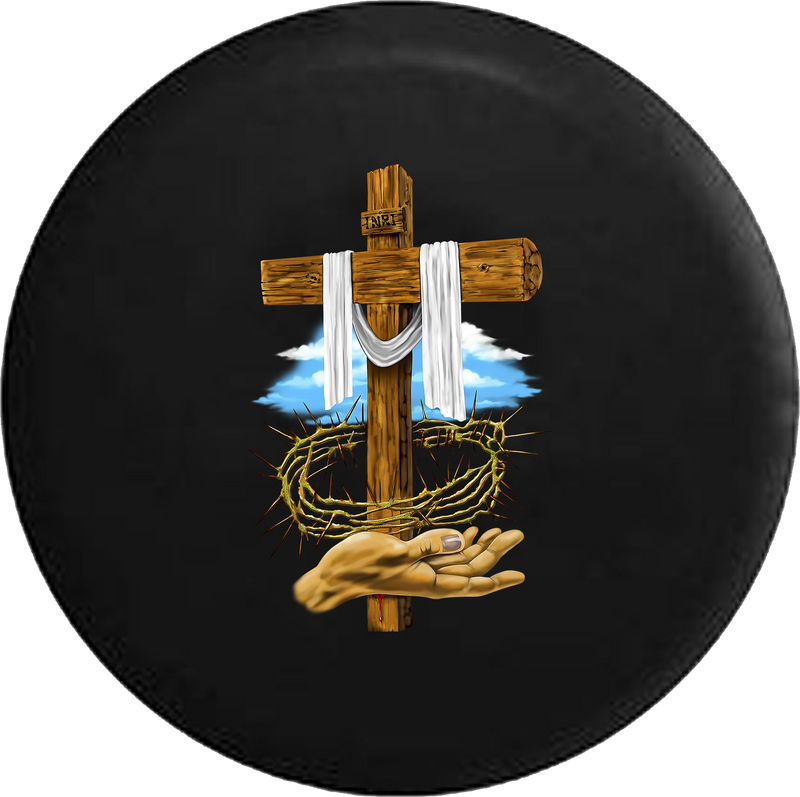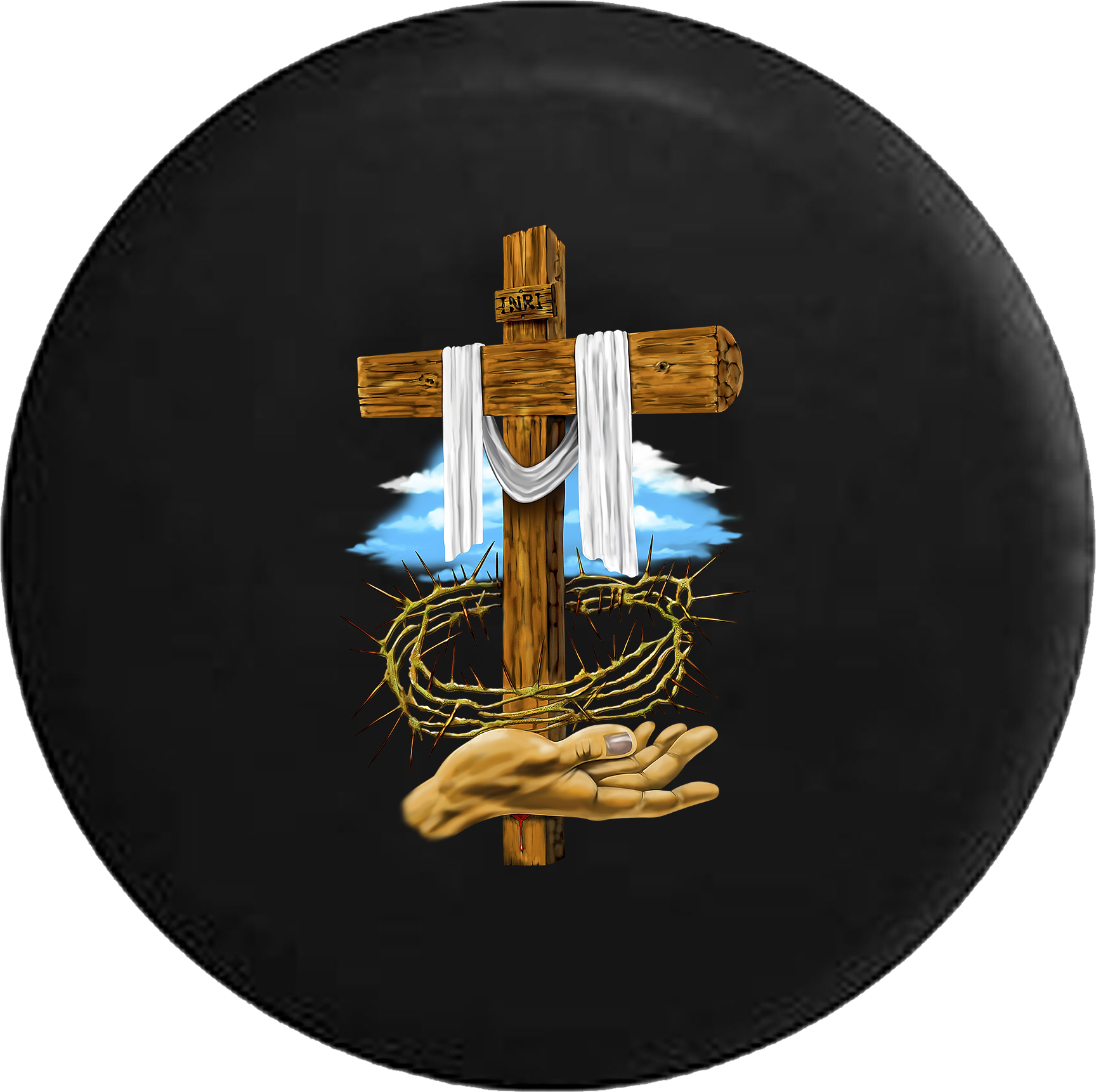 Wooden Cross Crown of Thorns Jesus God Blessed Life Jeep Camper Spare Tire Cover Custom Size - V369